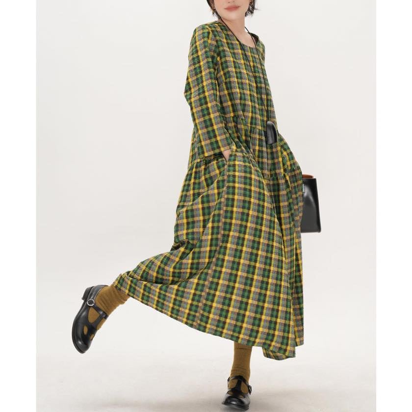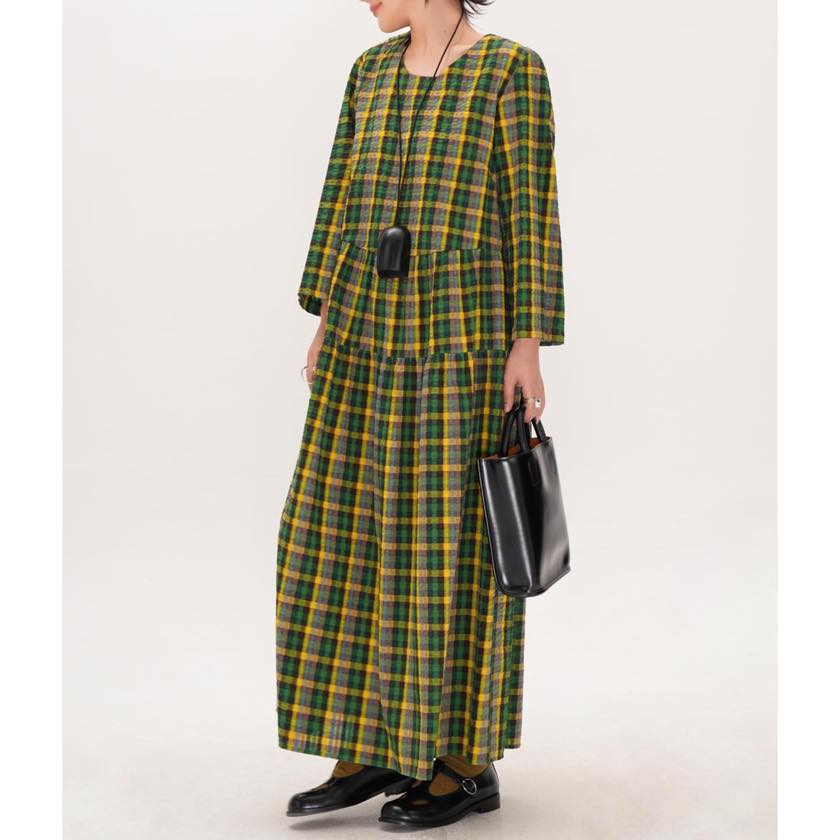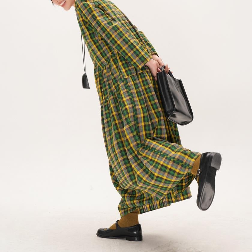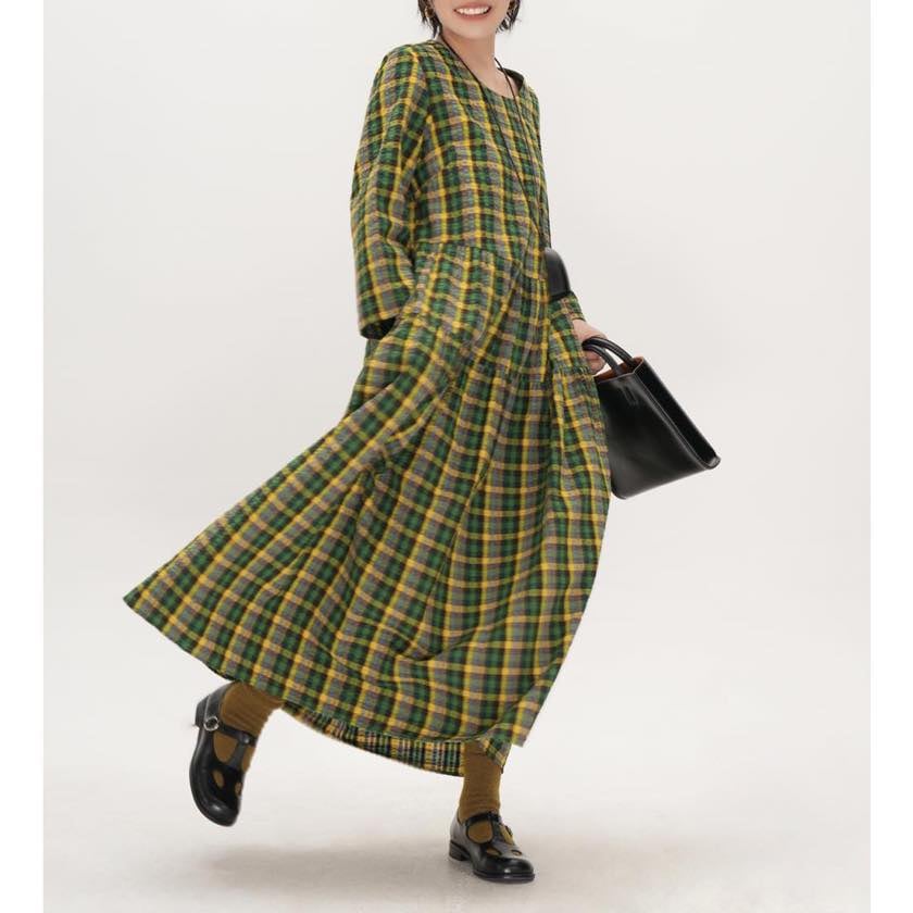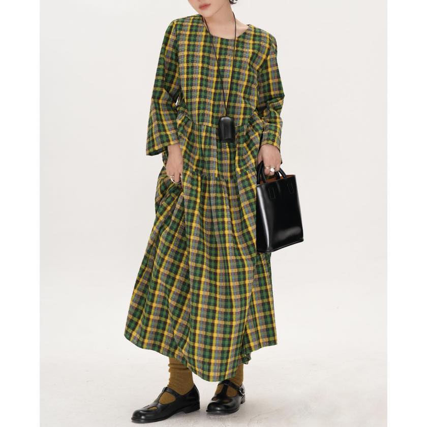 retro check round neck one-piece
