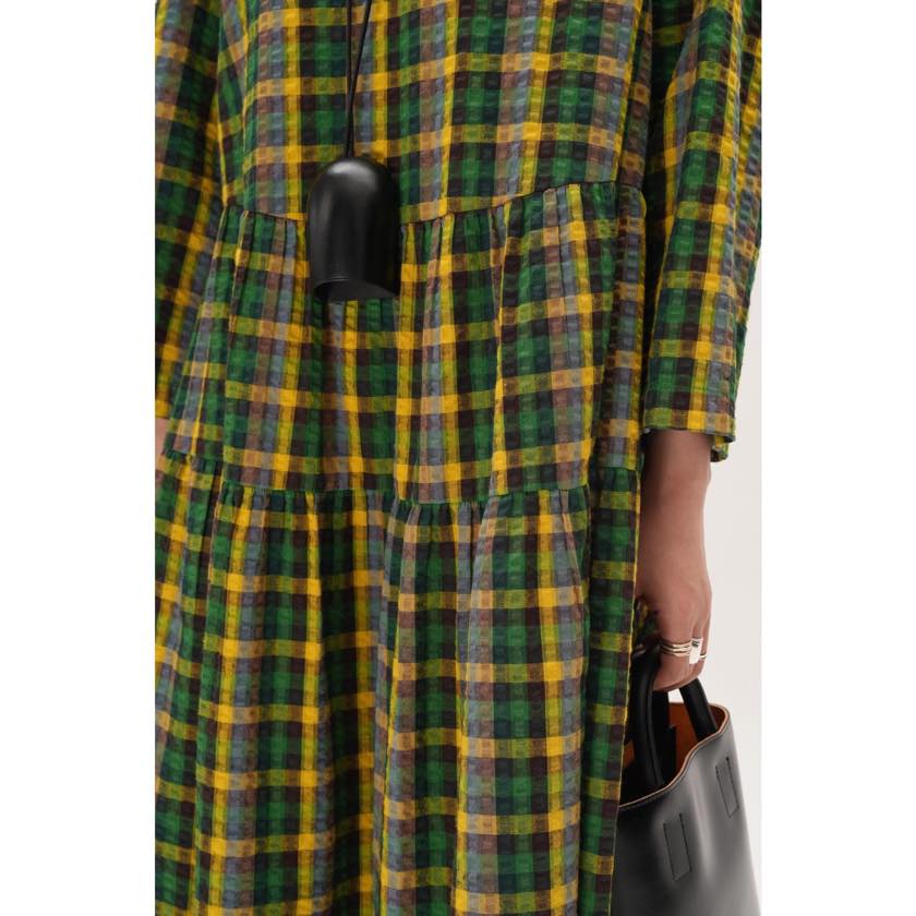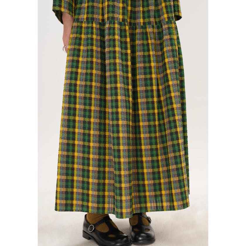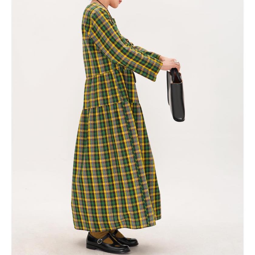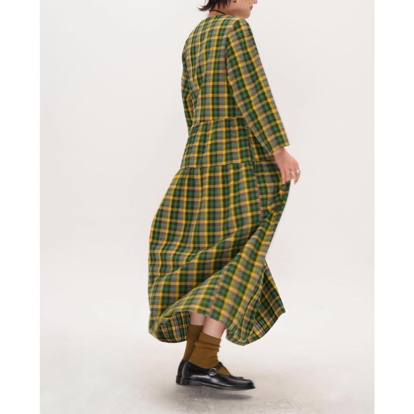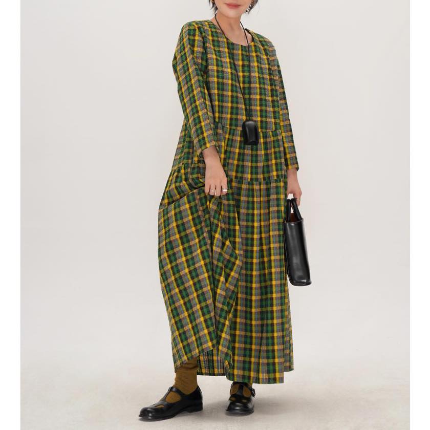 retro check round neck one-piece