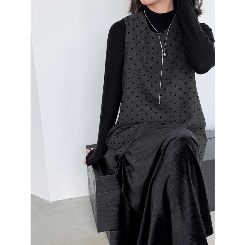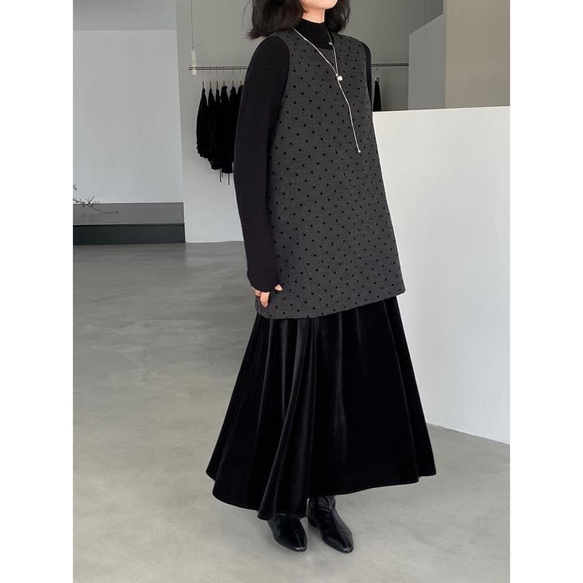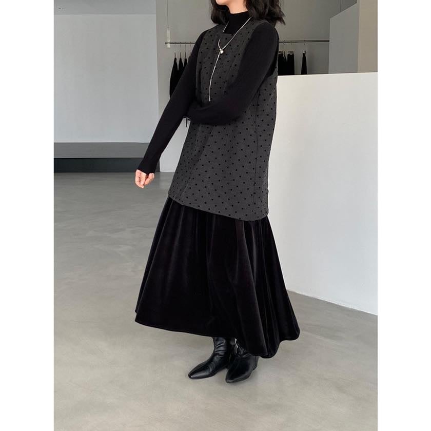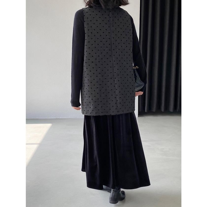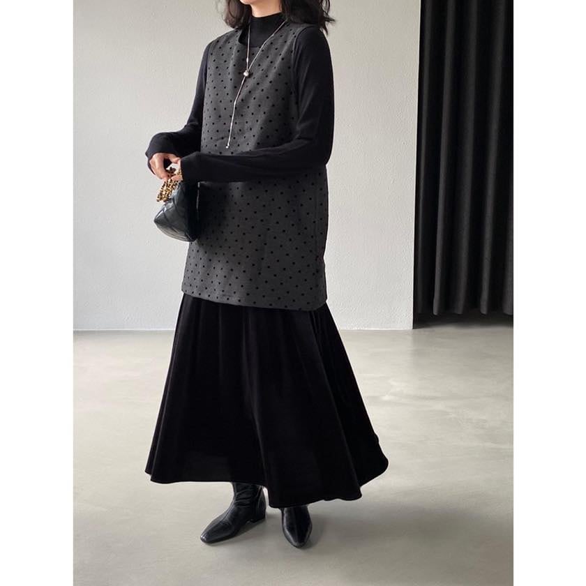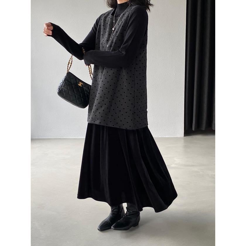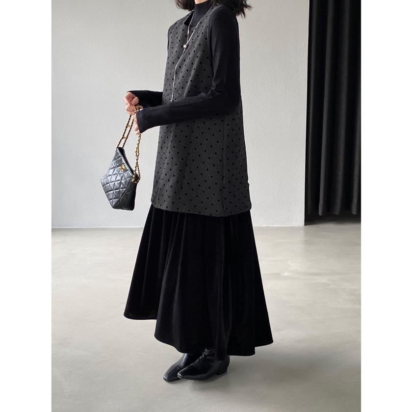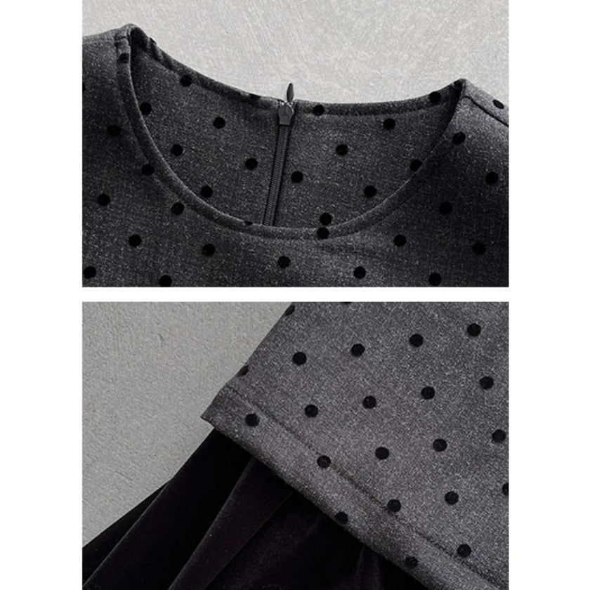 上品なドットと揺れるシルエットが、女性らしい雰囲気を引き立てます。