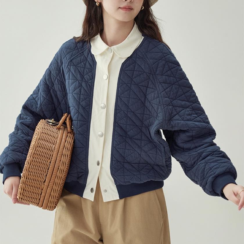 contrast color quilted jacket