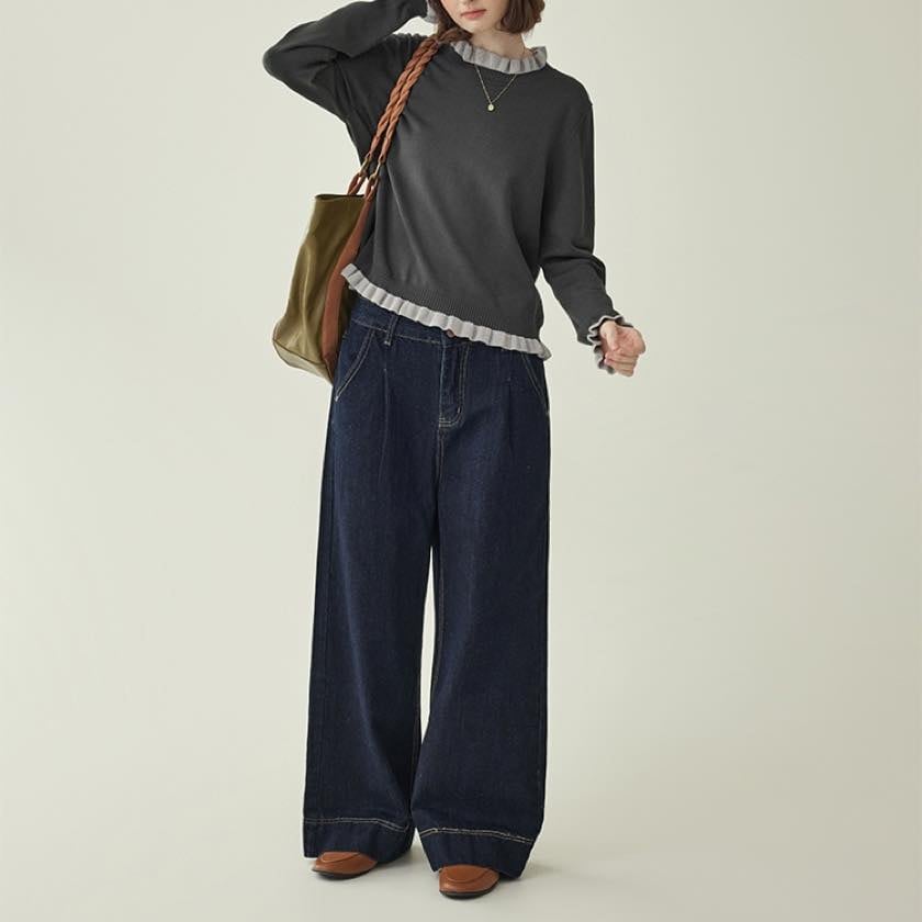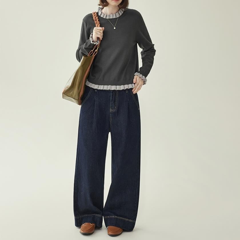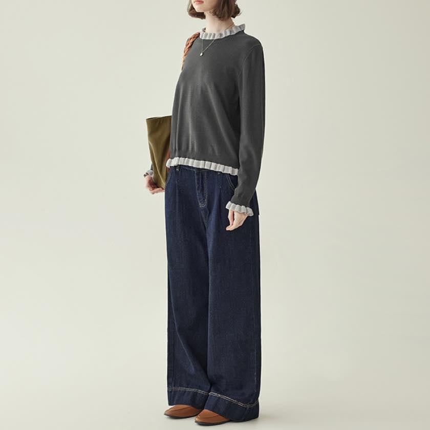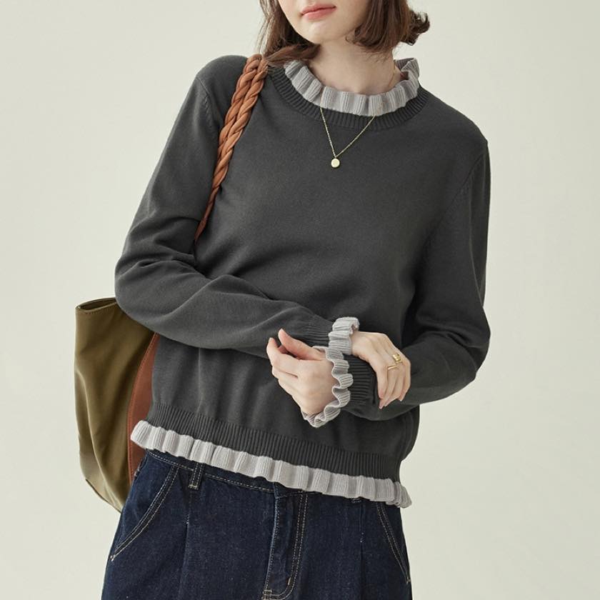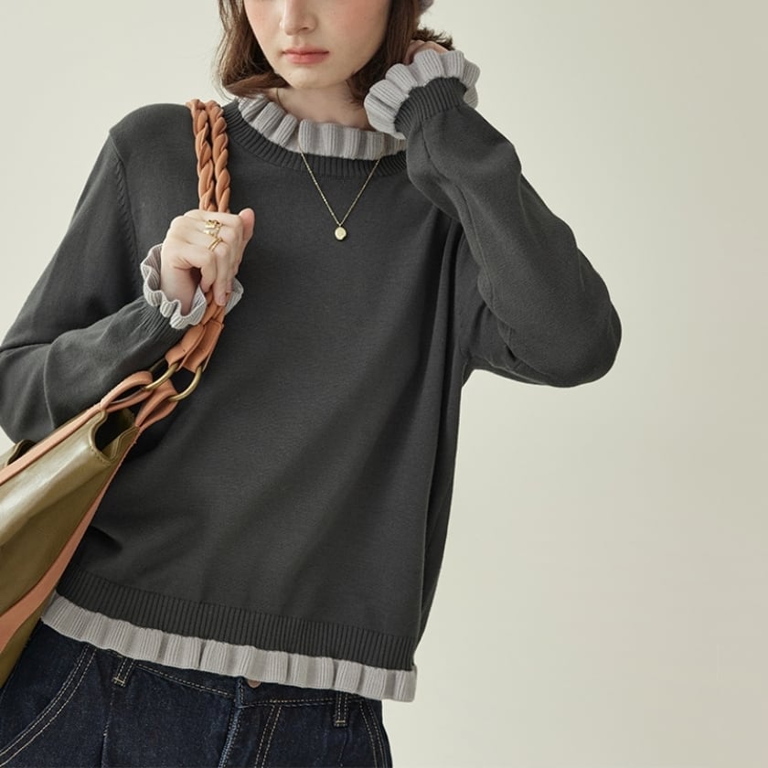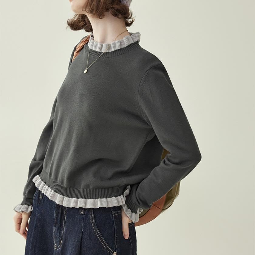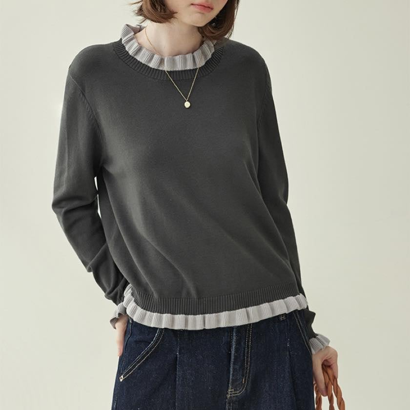 frilled design knit pullover