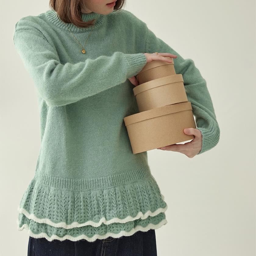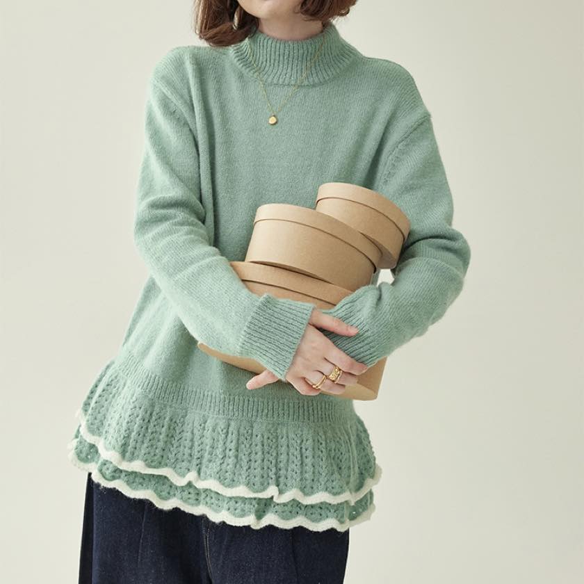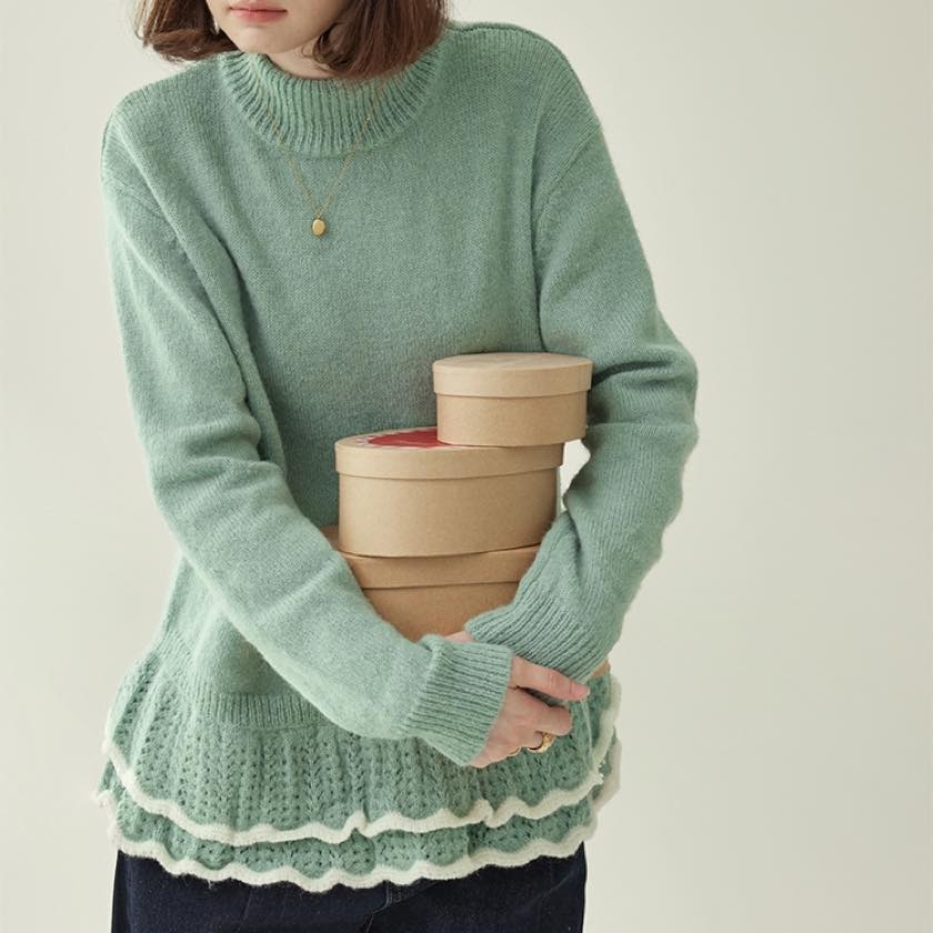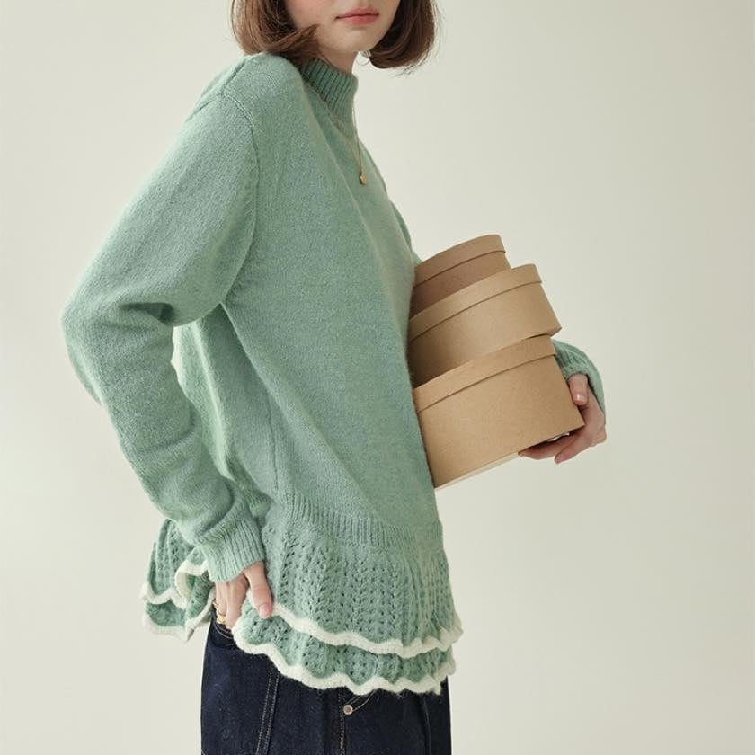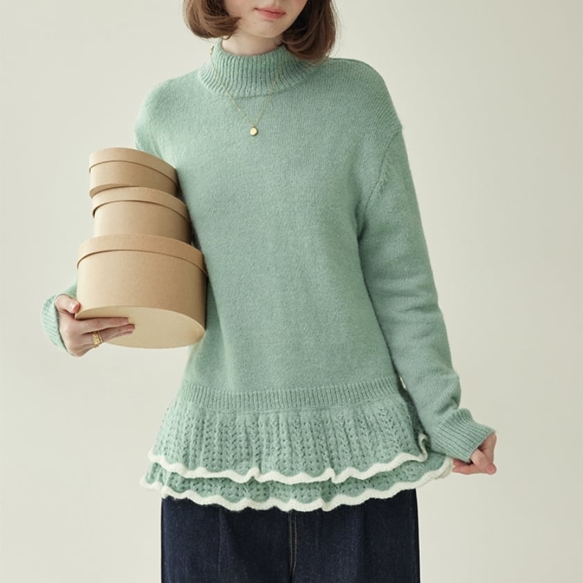 double frill hem knit sweater