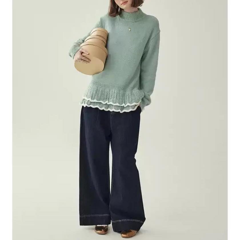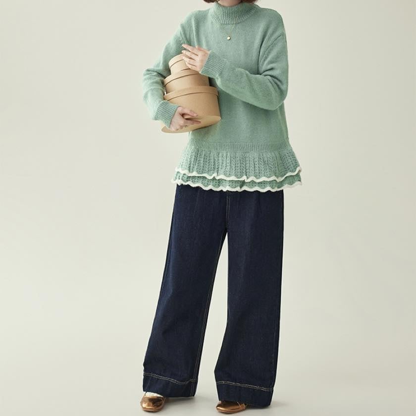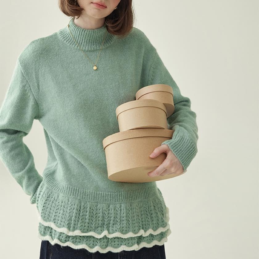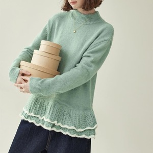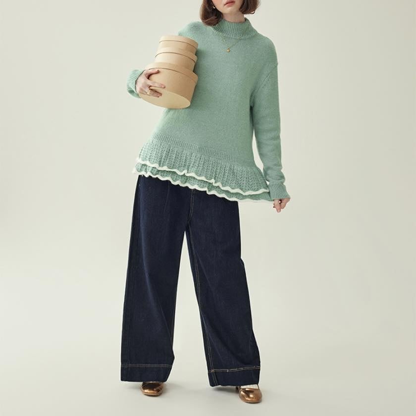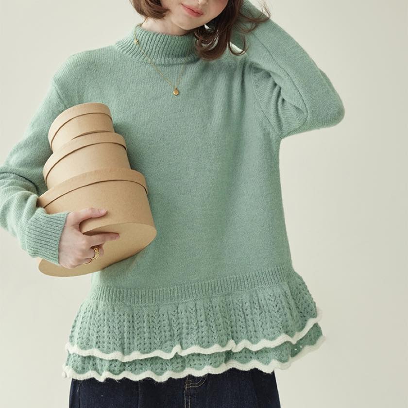 double frill hem knit sweater