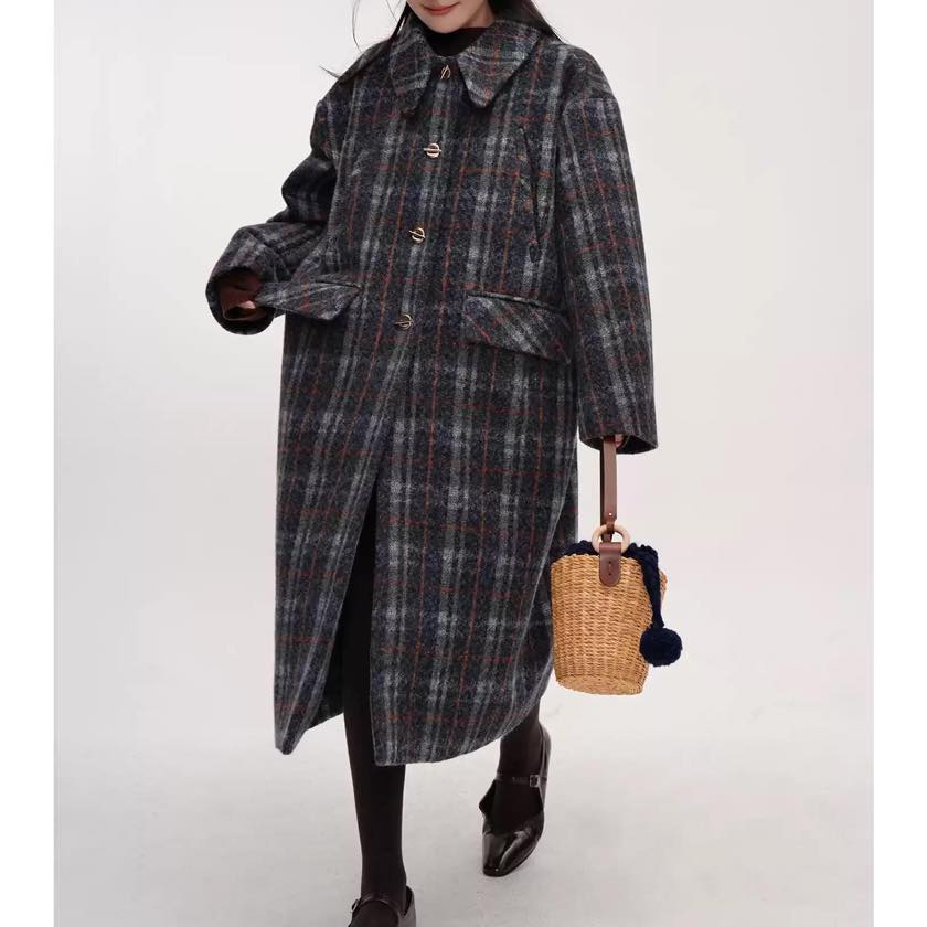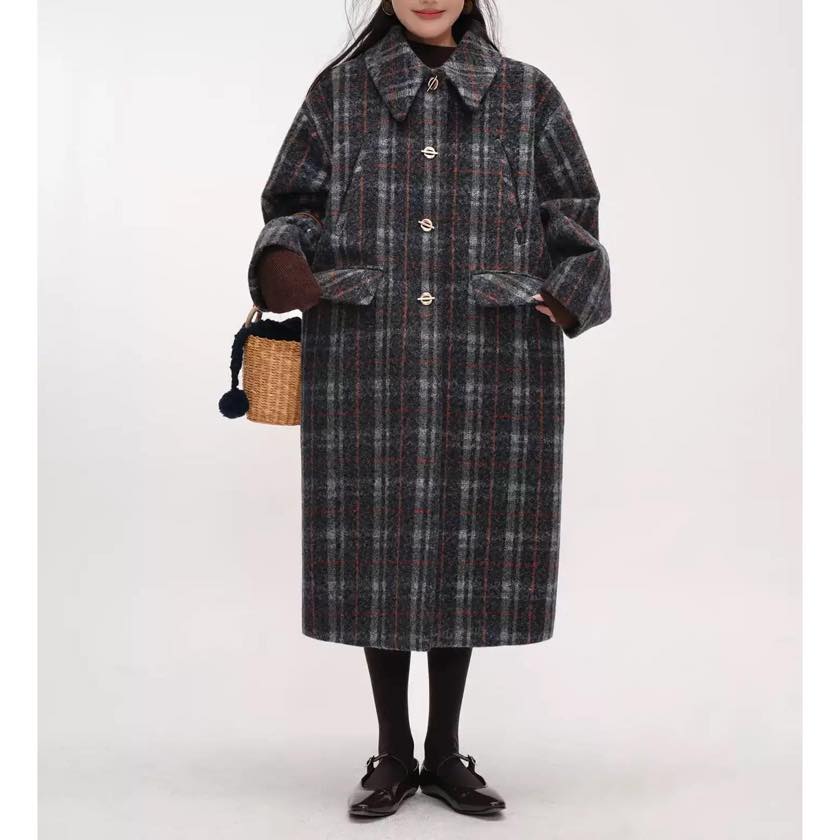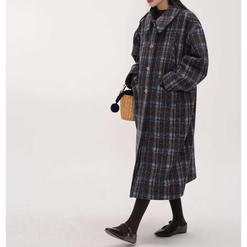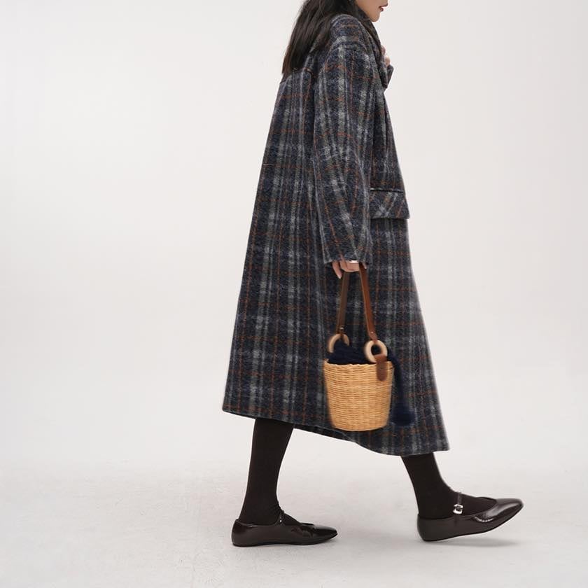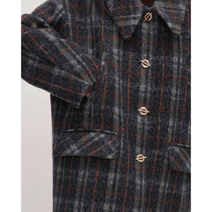 深みのある配色のチェック柄が上品に映える、どこかクラシカルな空気を纏ったコート。