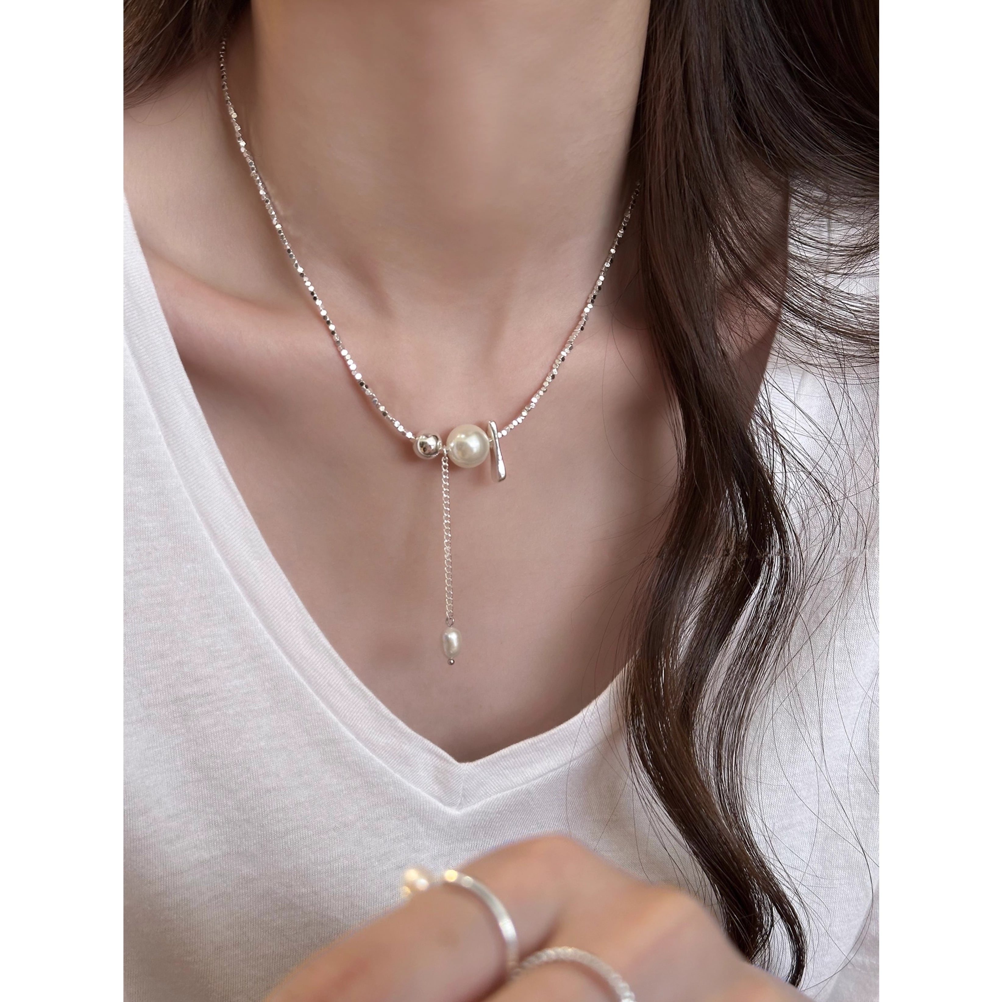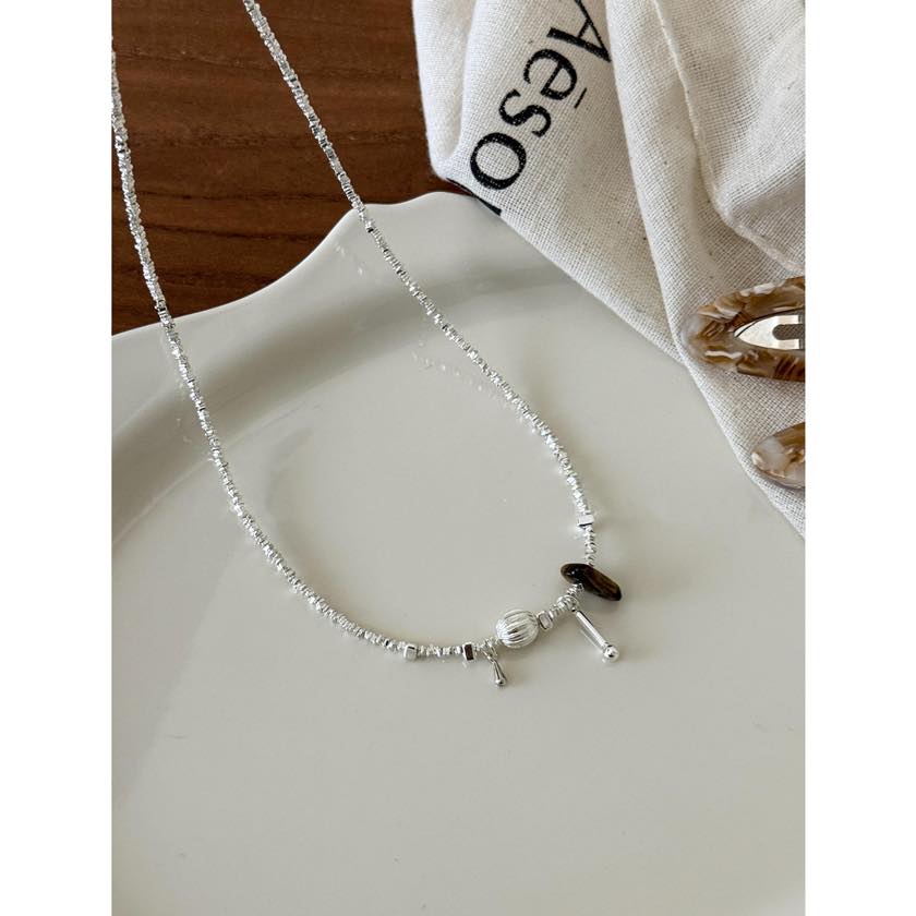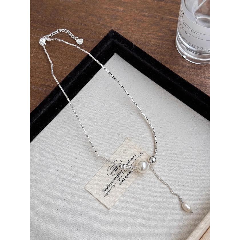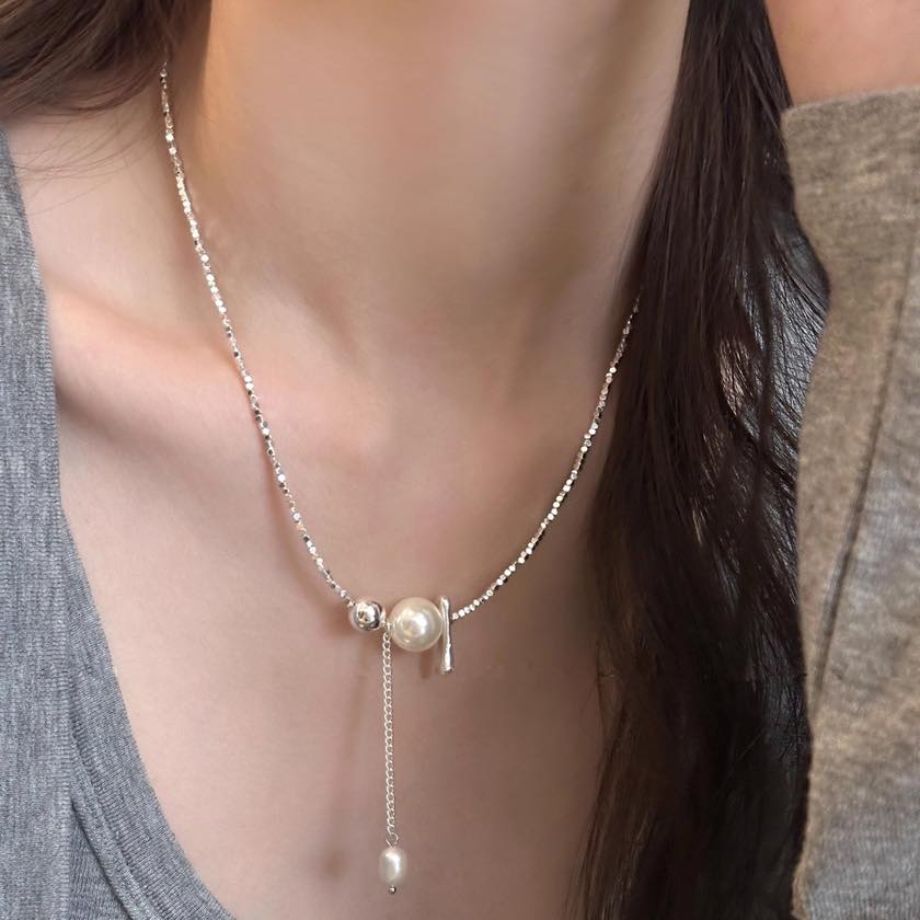 シルバーのきらめきに、パールやストーンの優しい表情を組み合わせたネックレス。