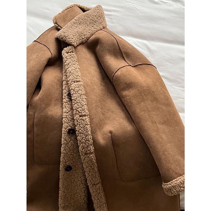 fluffy boa double pocket coat