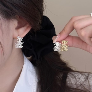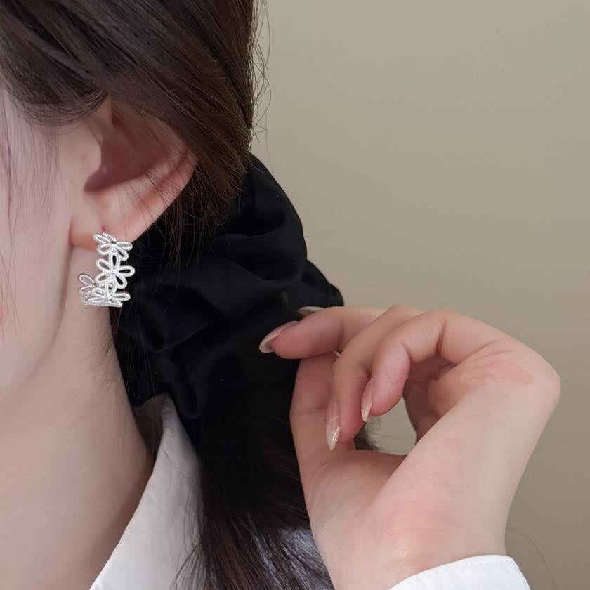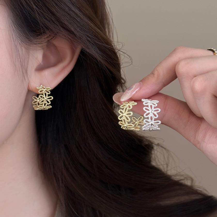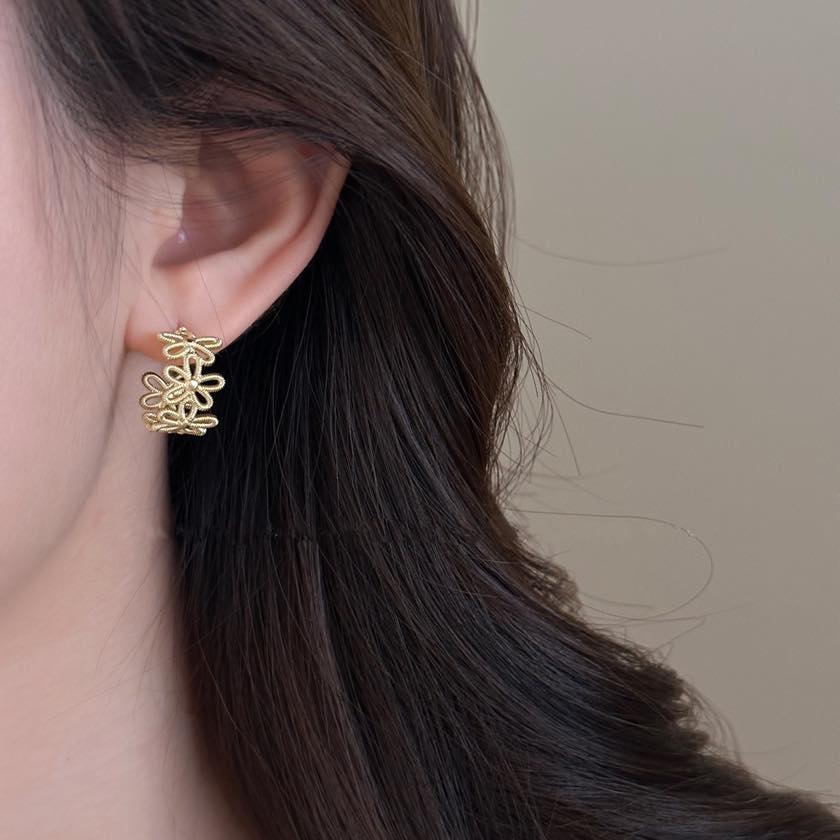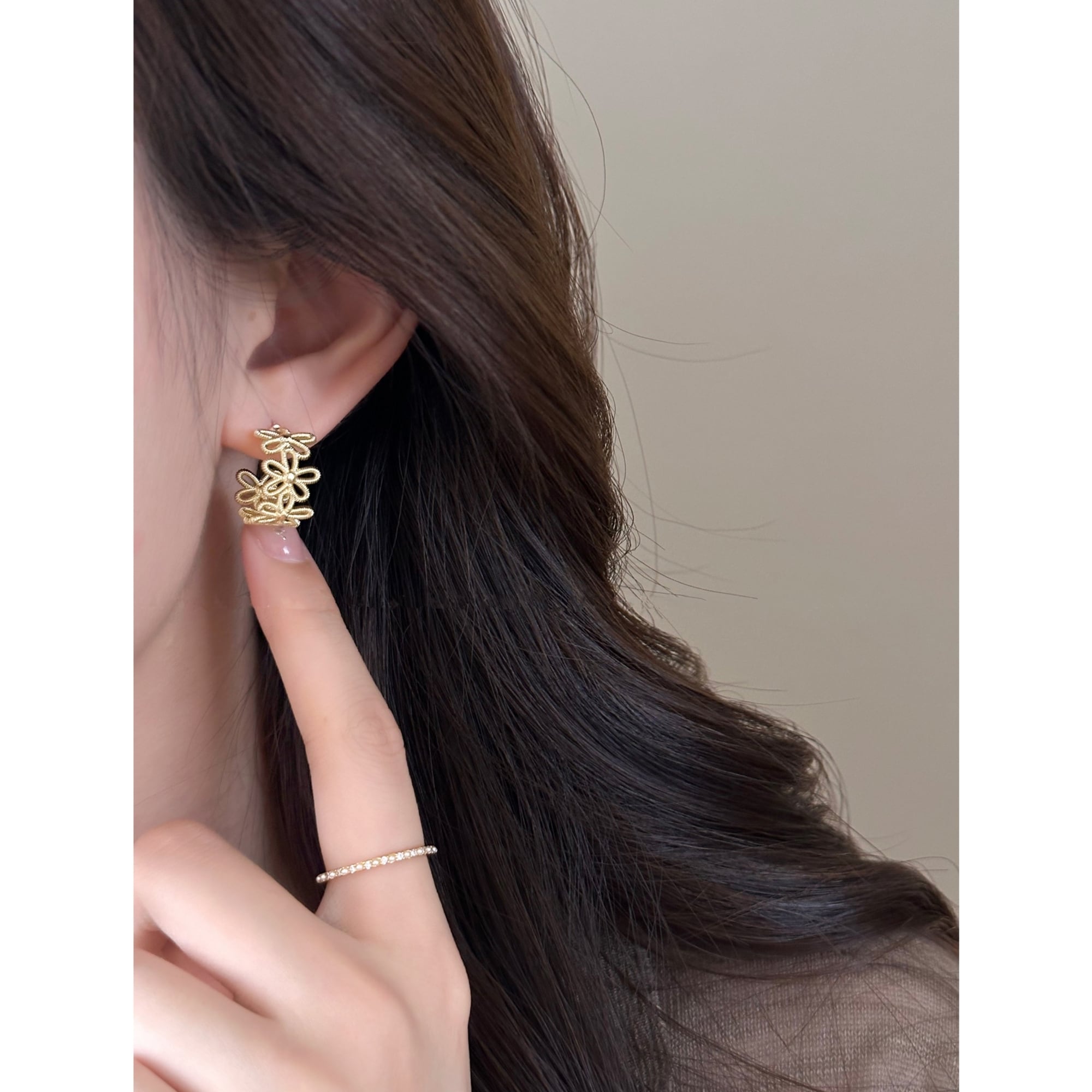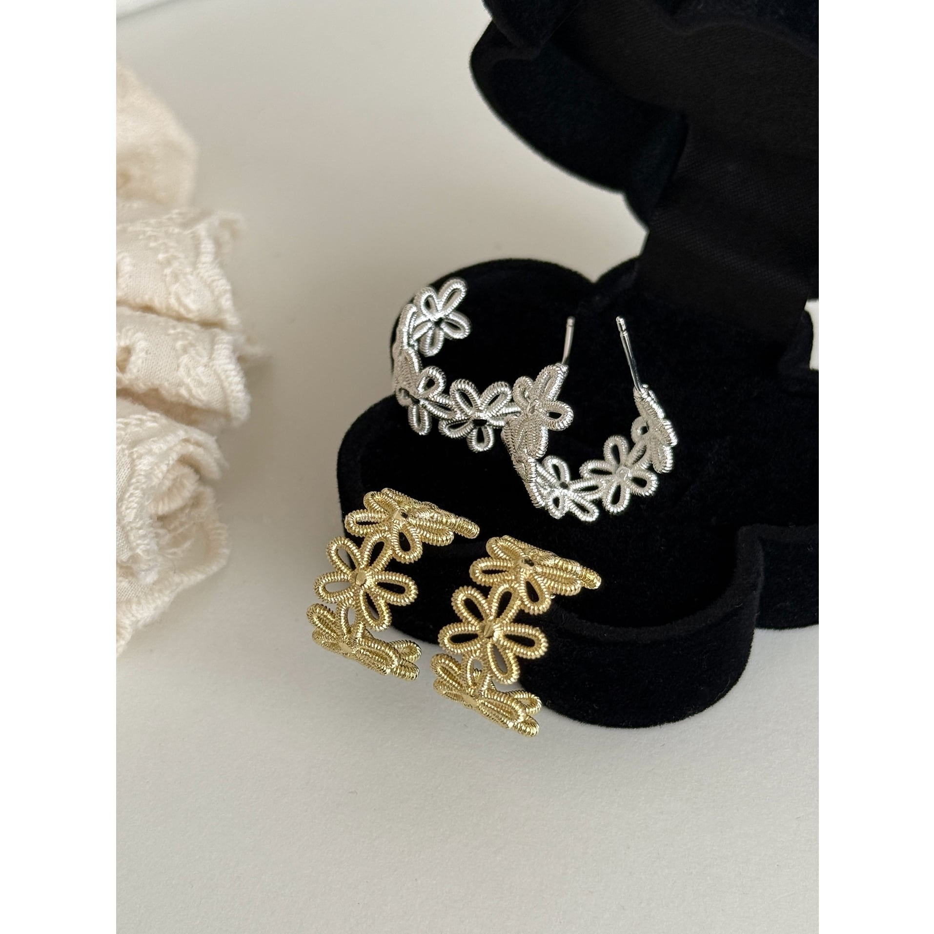 繊細な花のラインを連ねた、華やかさと可憐さを兼ね備えたピアス。