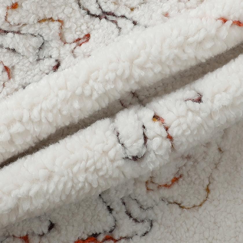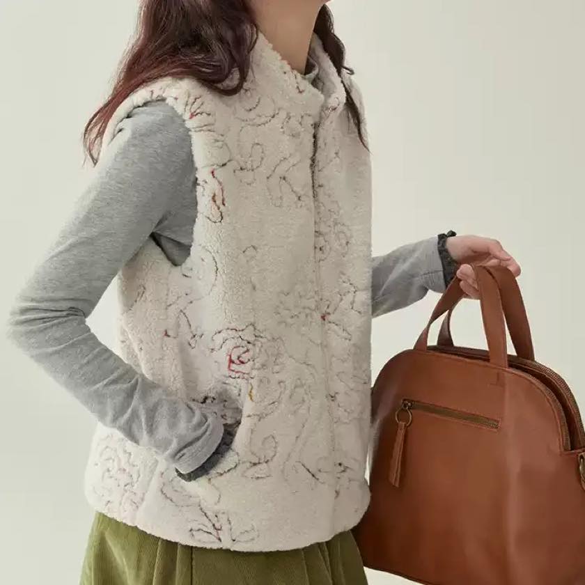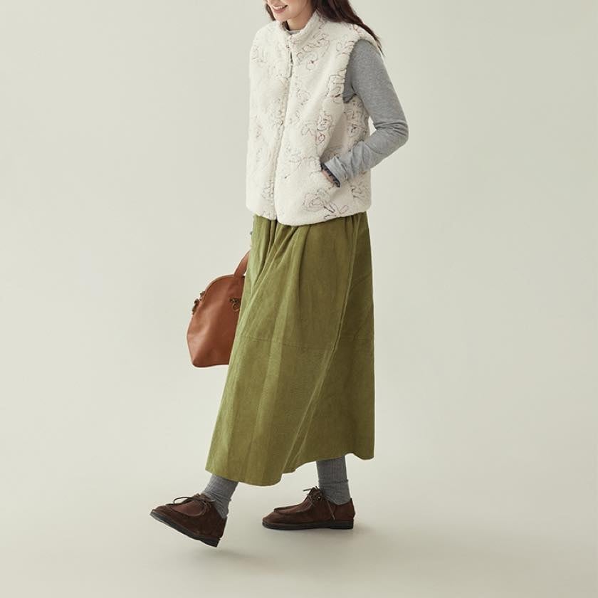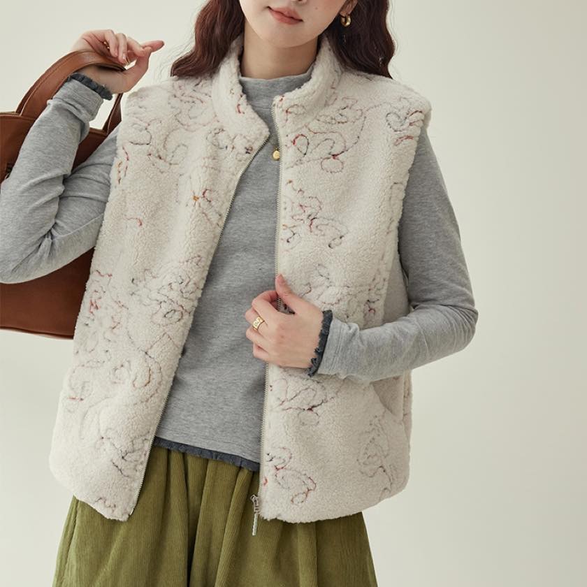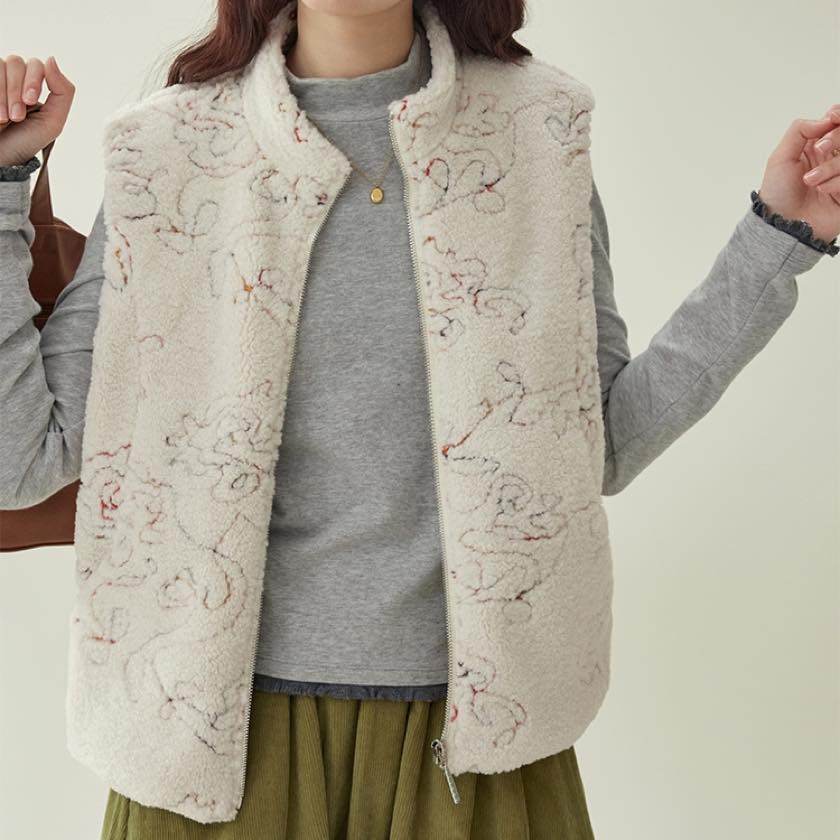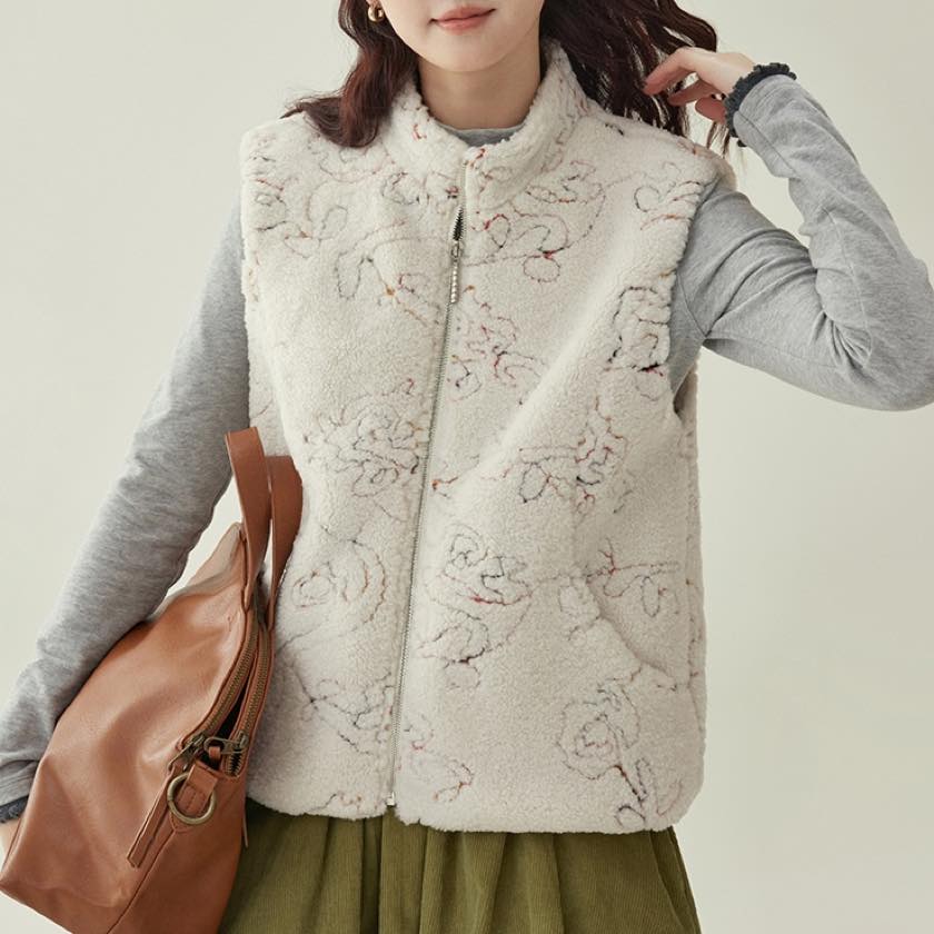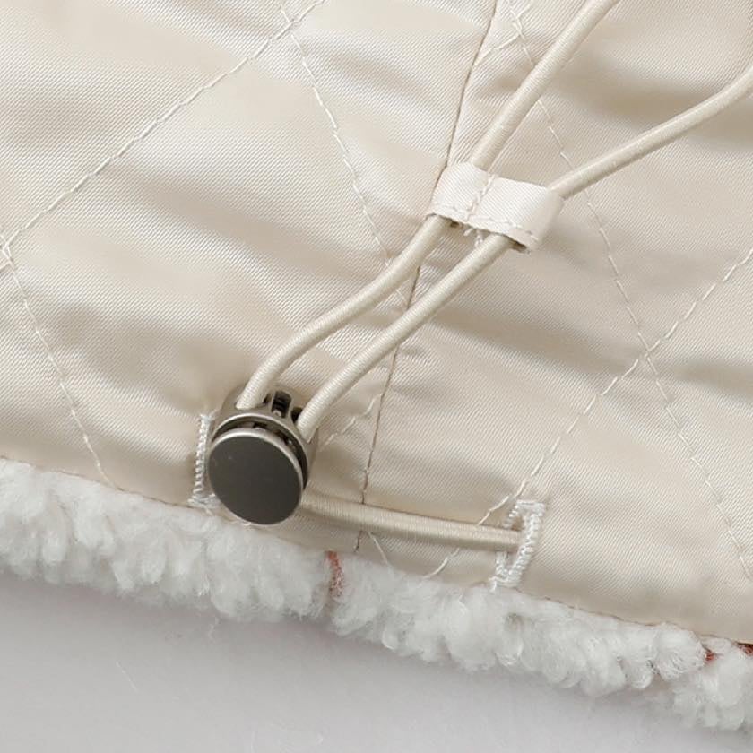 やさしいオフホワイトに手描き風のラインが織りなす表情が魅力のボアジャケット。