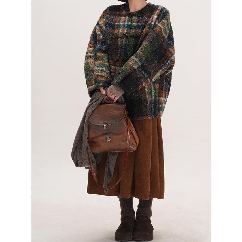 ブラウンやグリーンが絶妙に混ざり合った配色が、自然体のスタイルにやさしく溶け込みます。