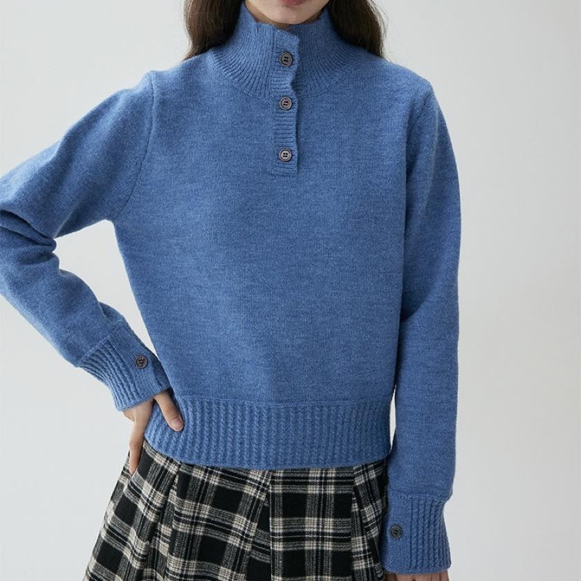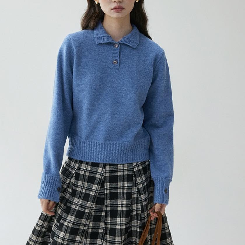 2way collar blue knit tops