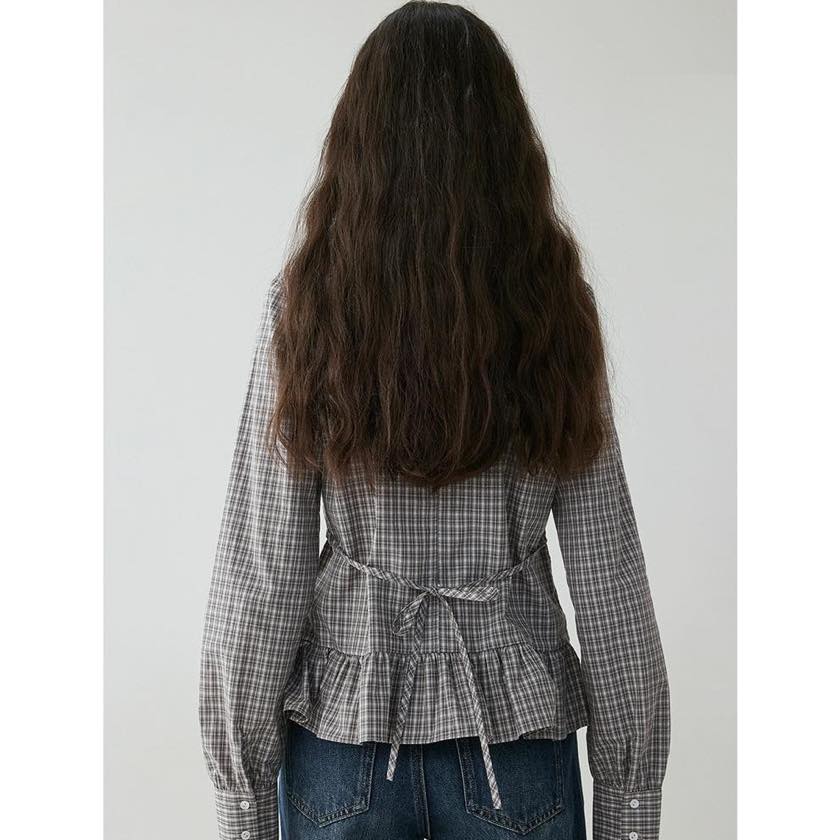 frilled hem check blouse