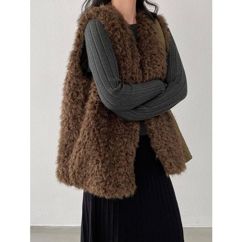 faux fur volume vest
