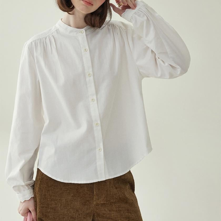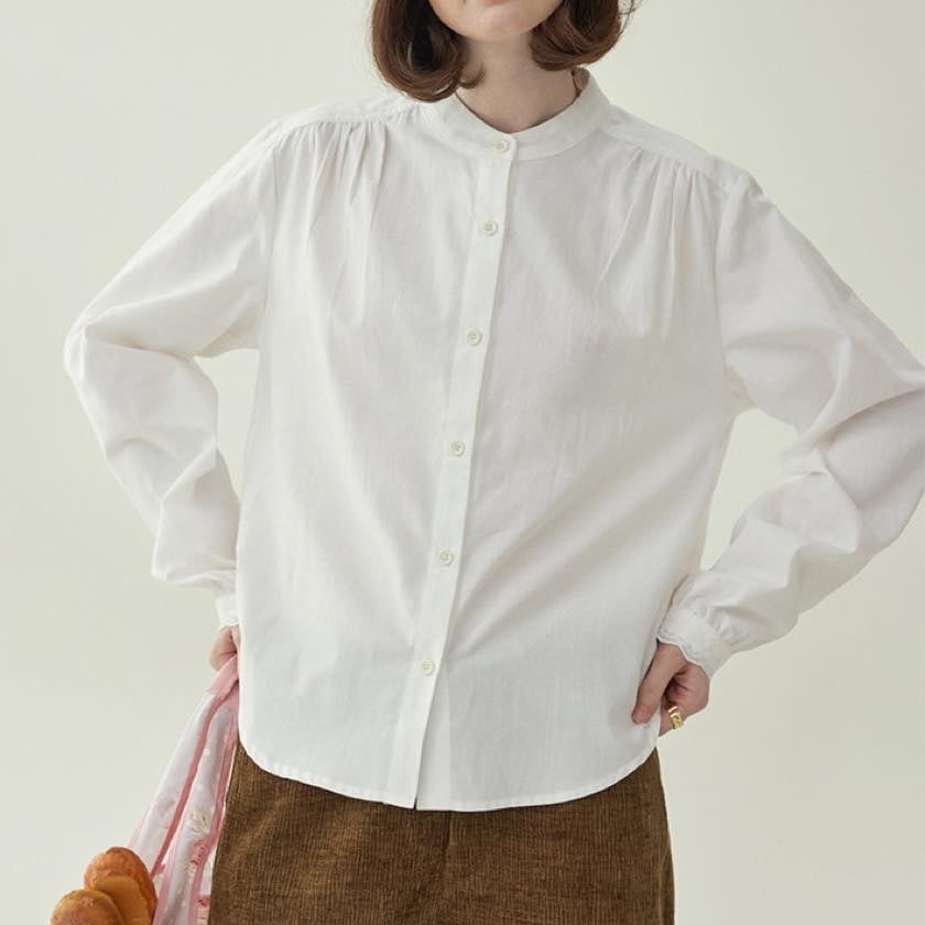 一枚で着ても、重ね着でも様になる、大人のためのブラウスです。