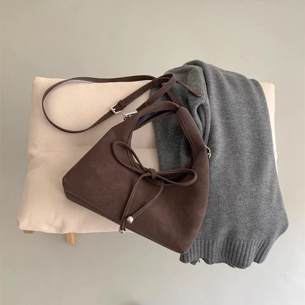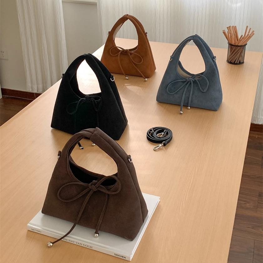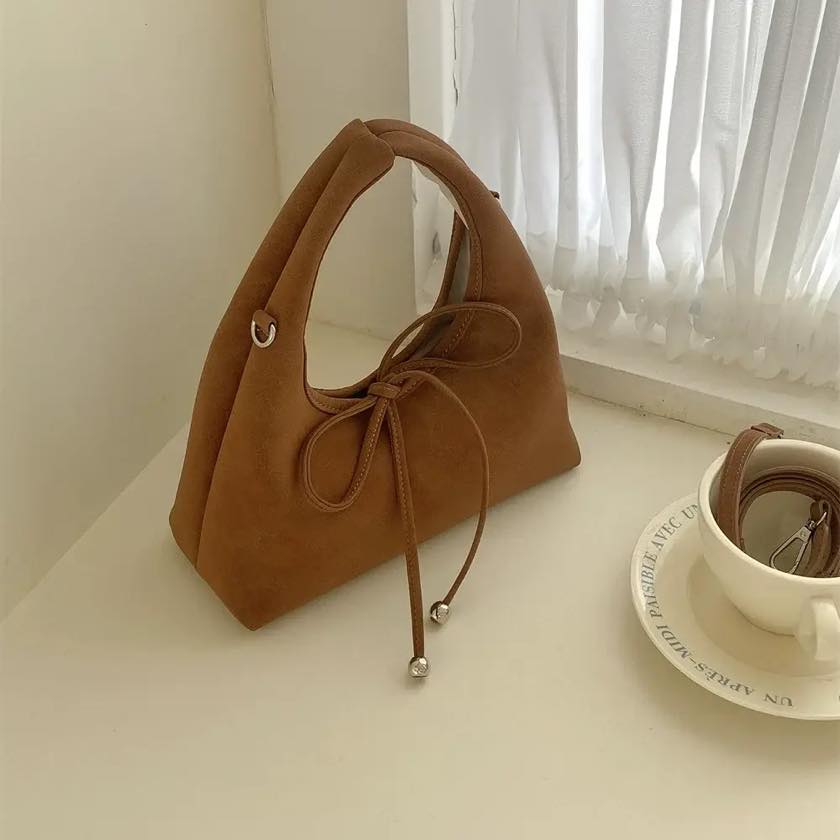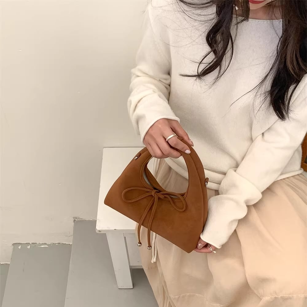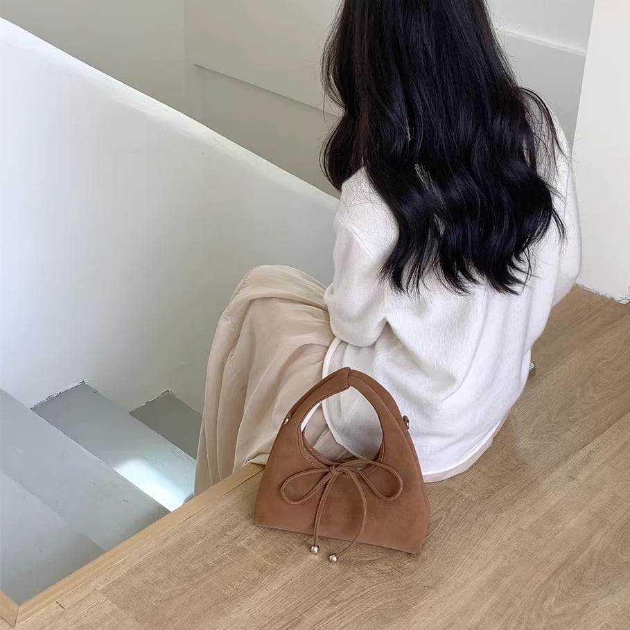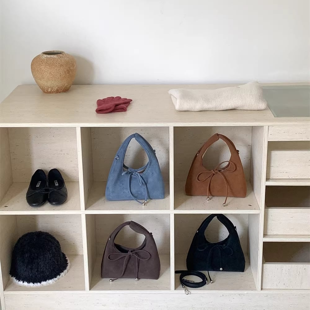 ribbon 2-way suede bag