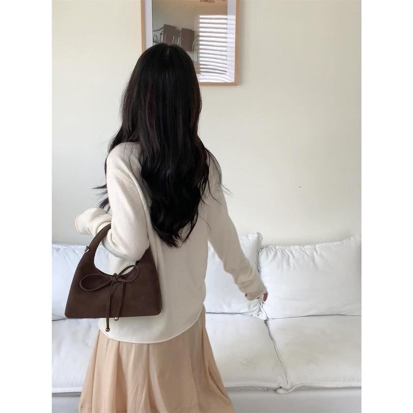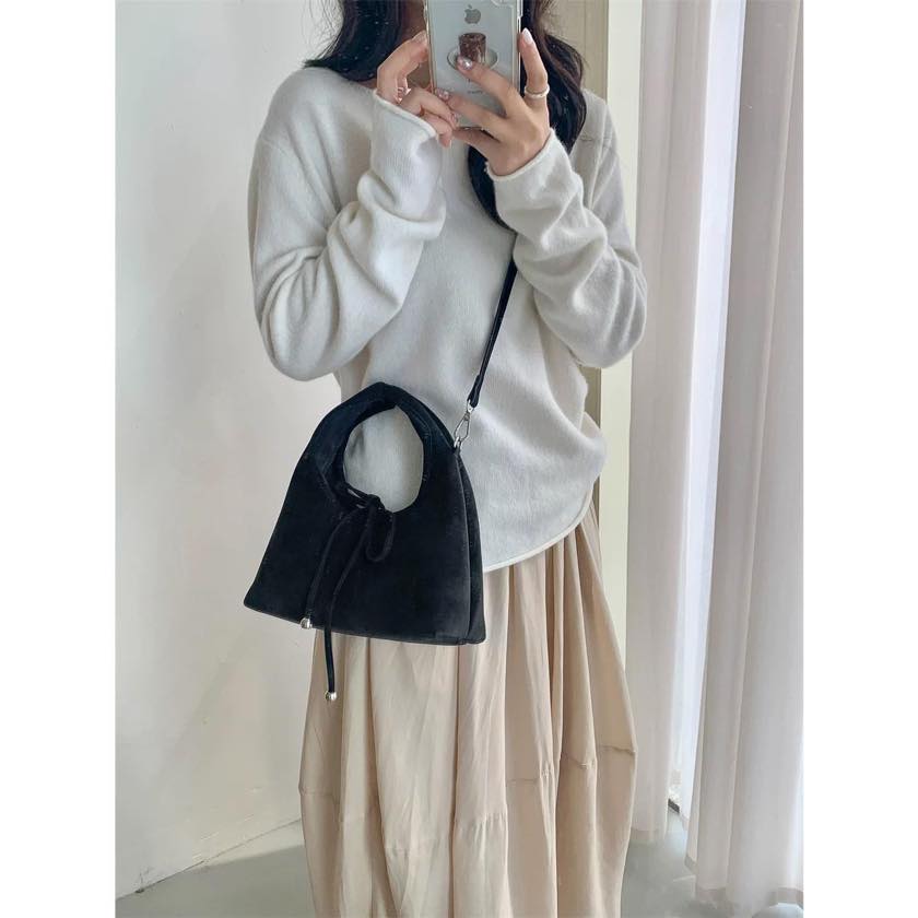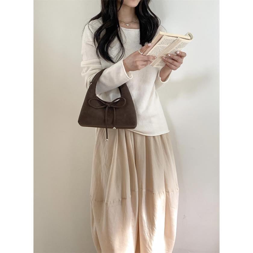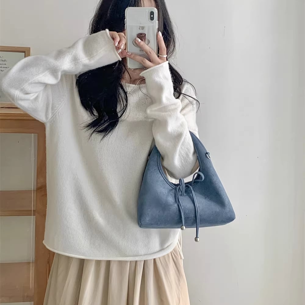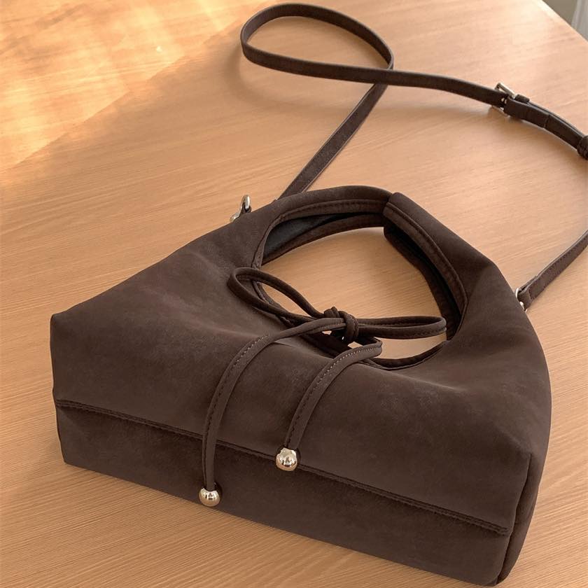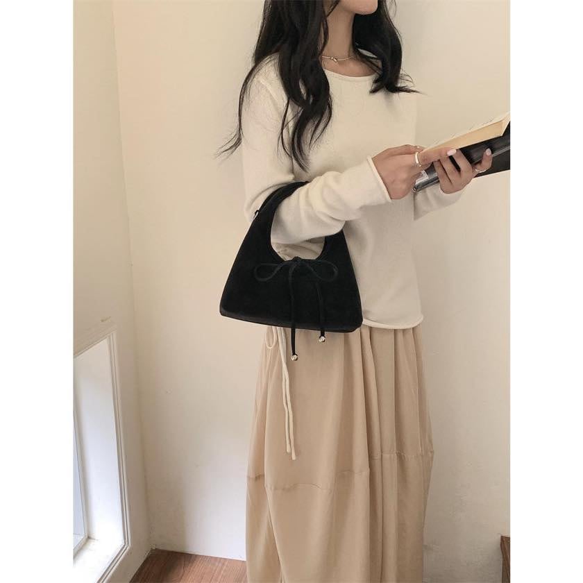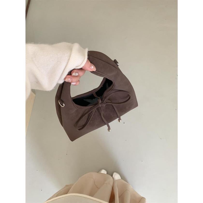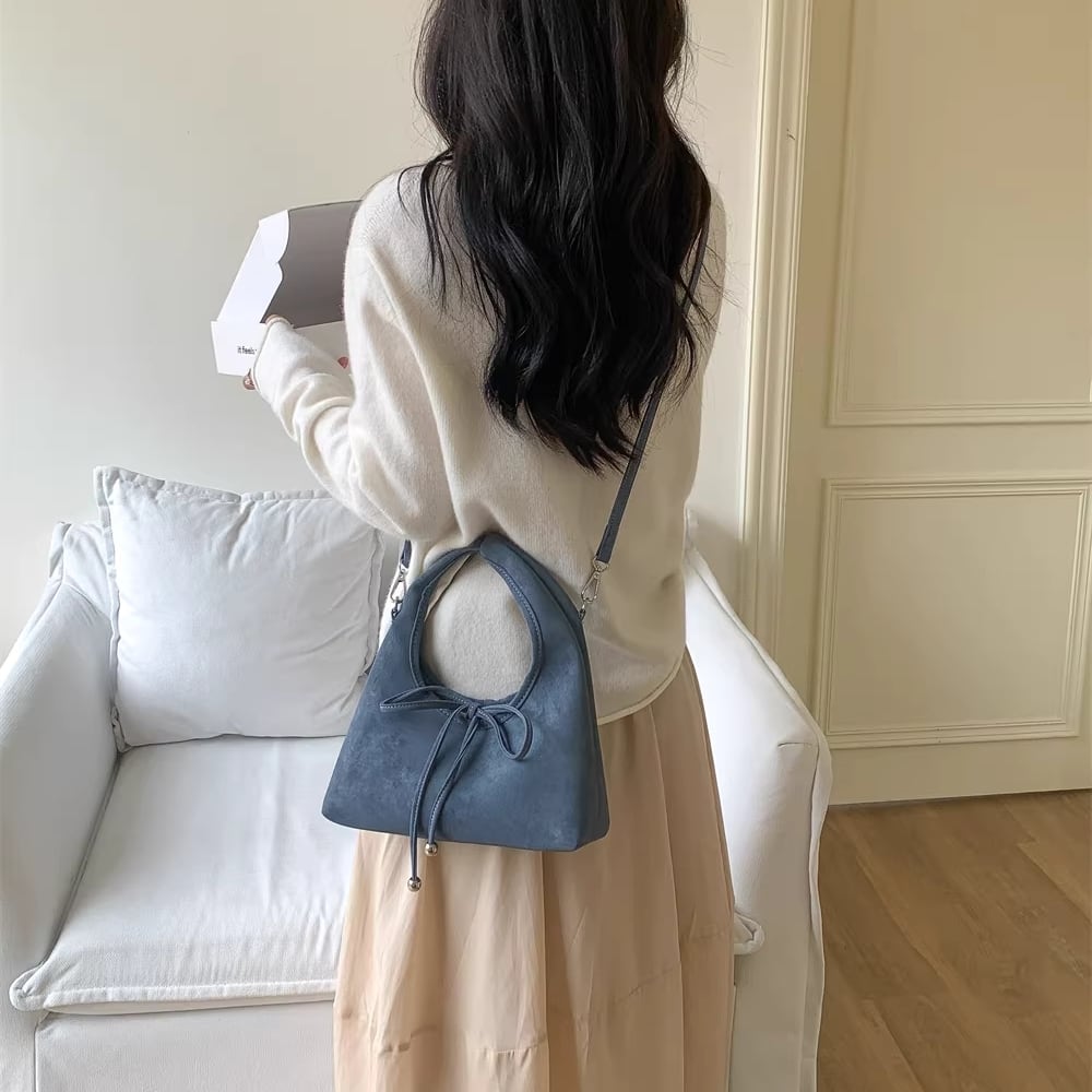 ribbon 2-way suede bag