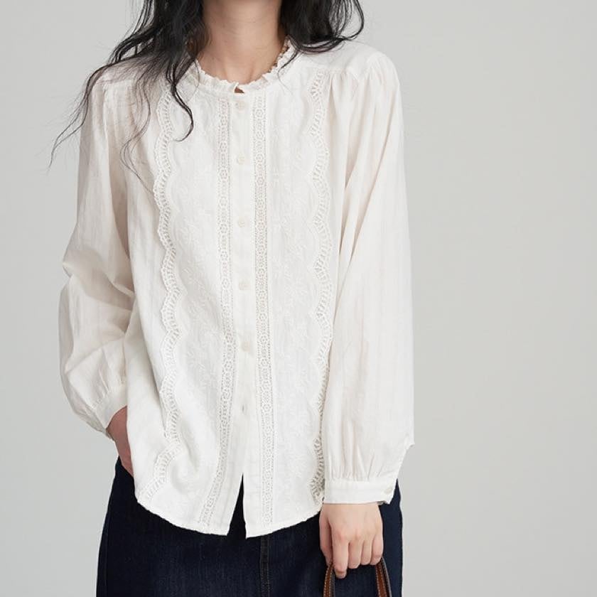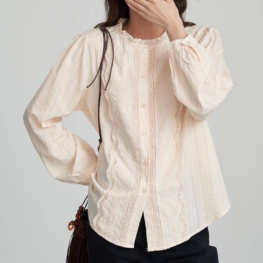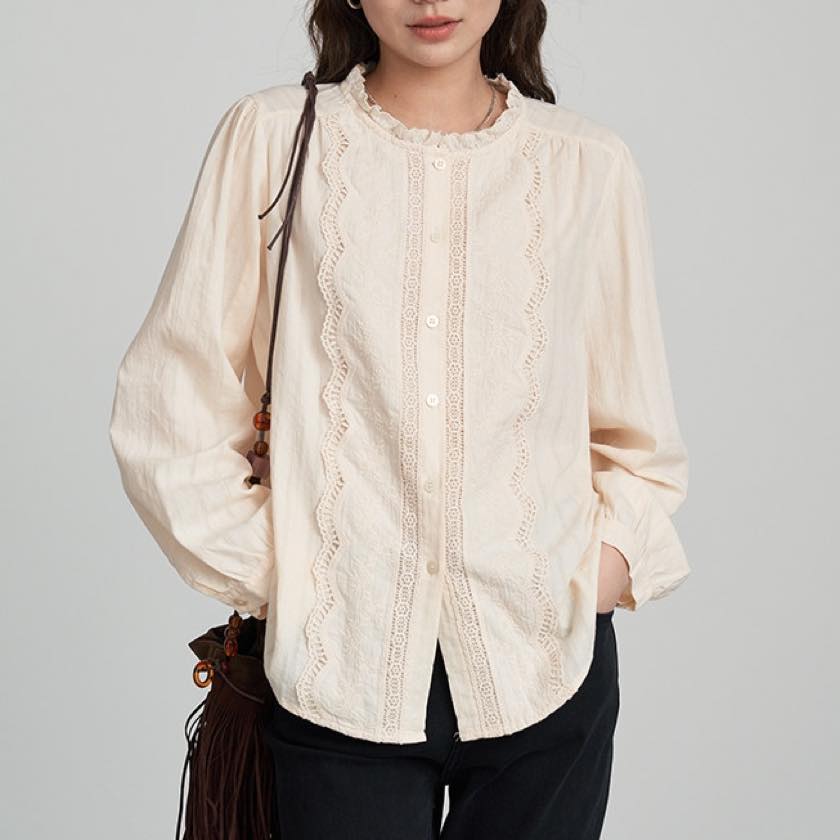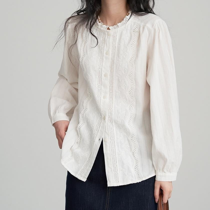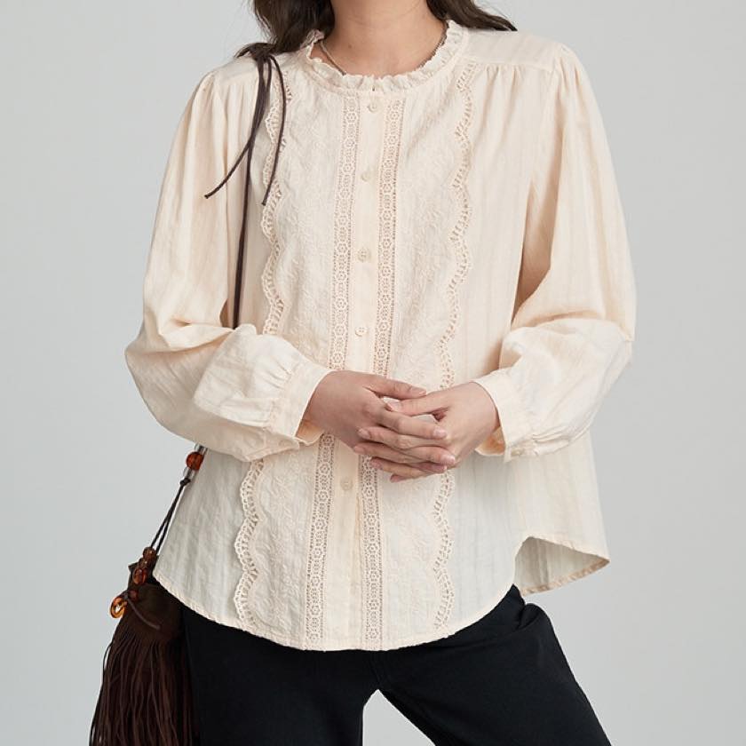 ruffle neck lace blouse