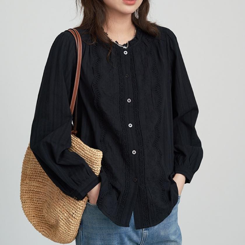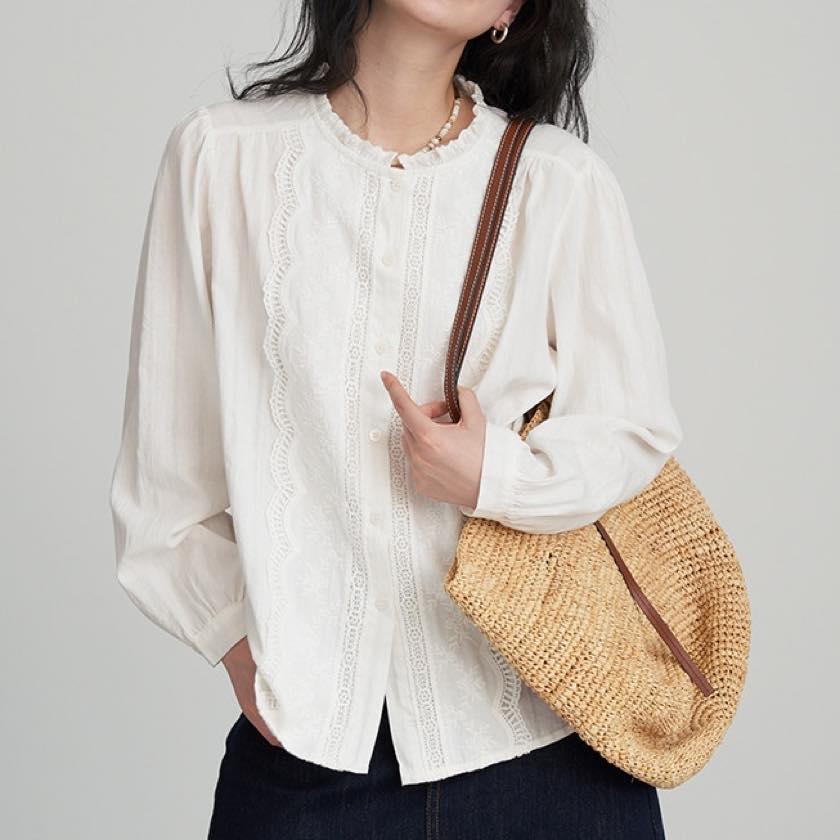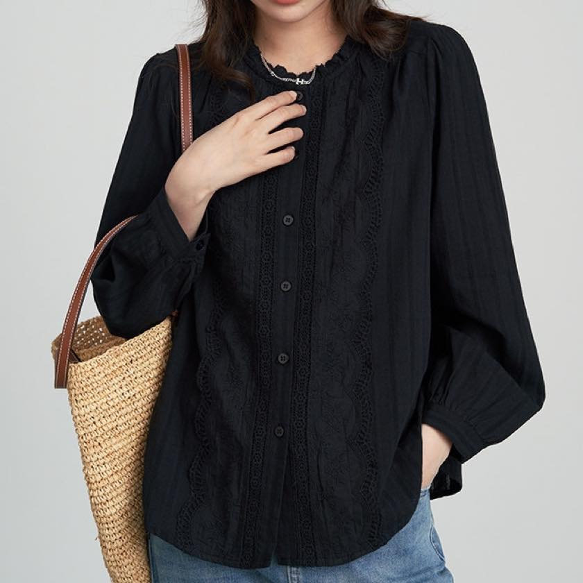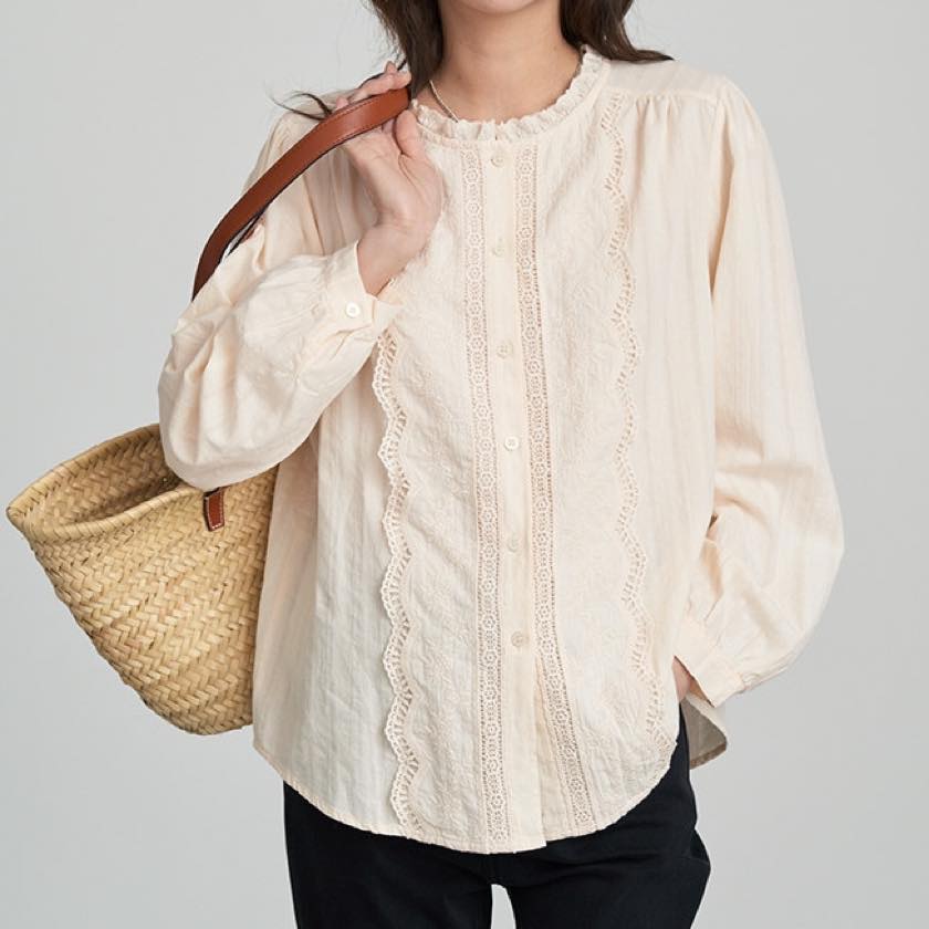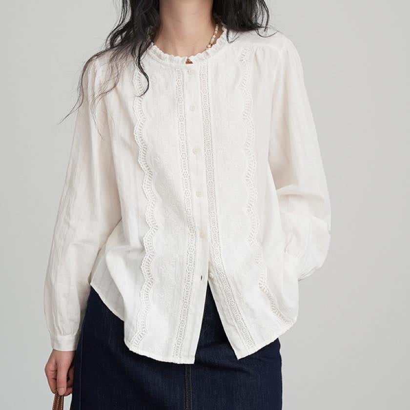 ruffle neck lace blouse