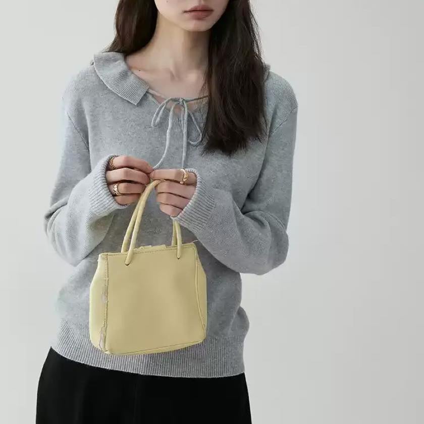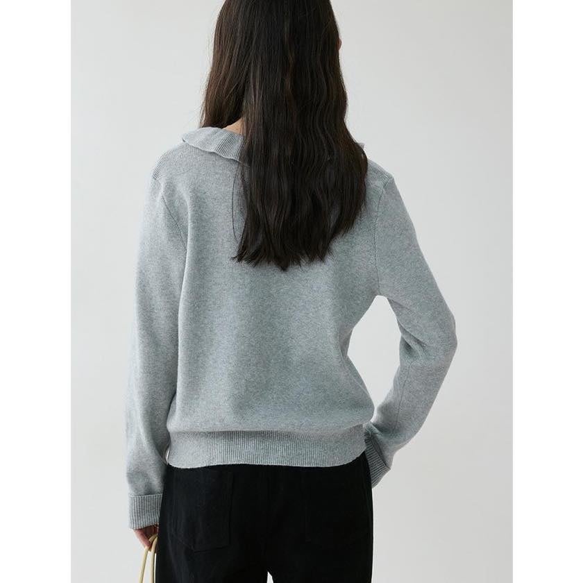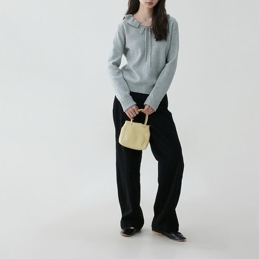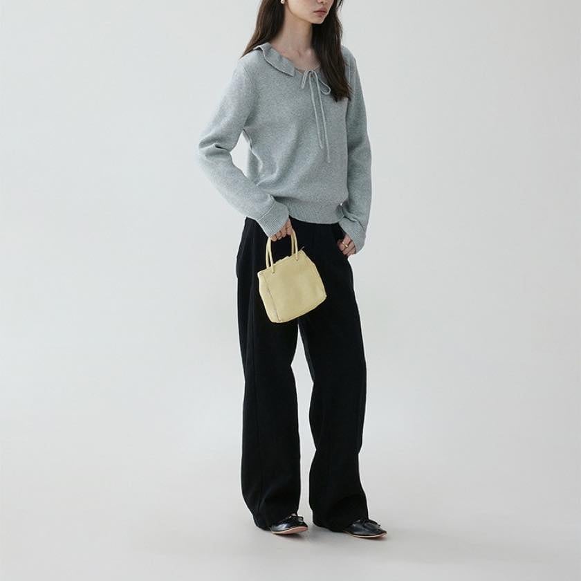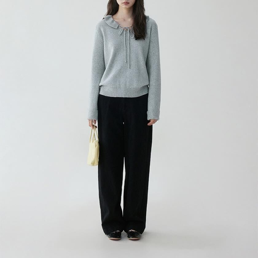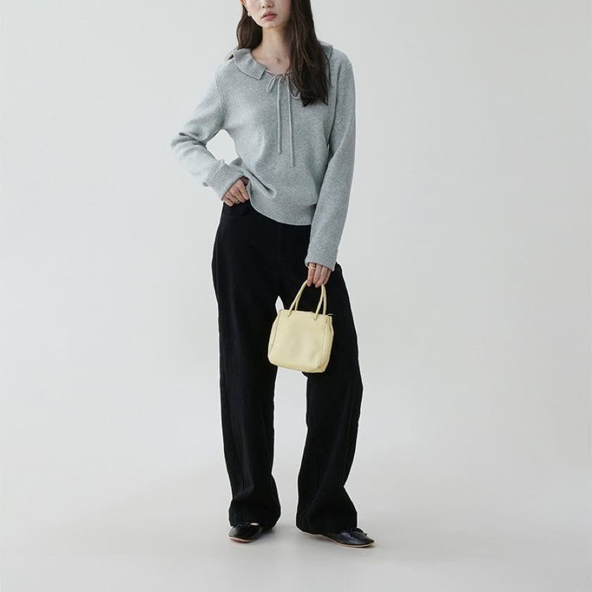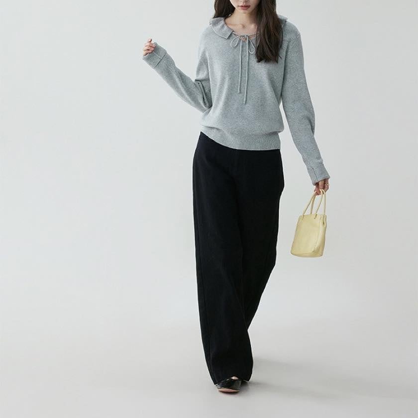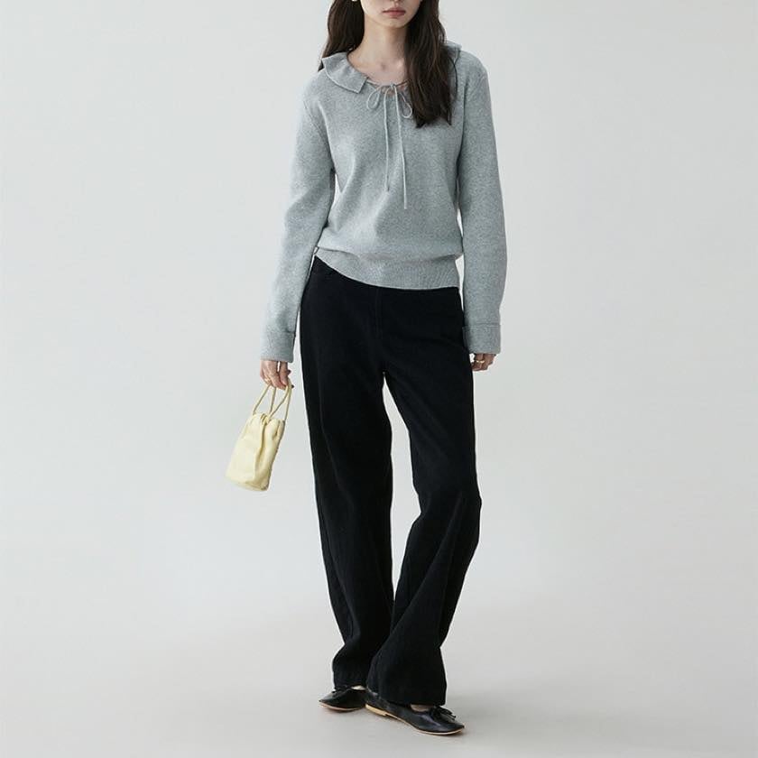 design collar ribbon tie knit tops