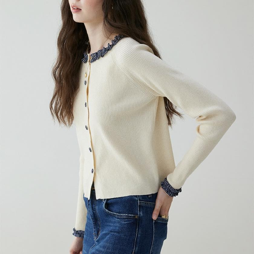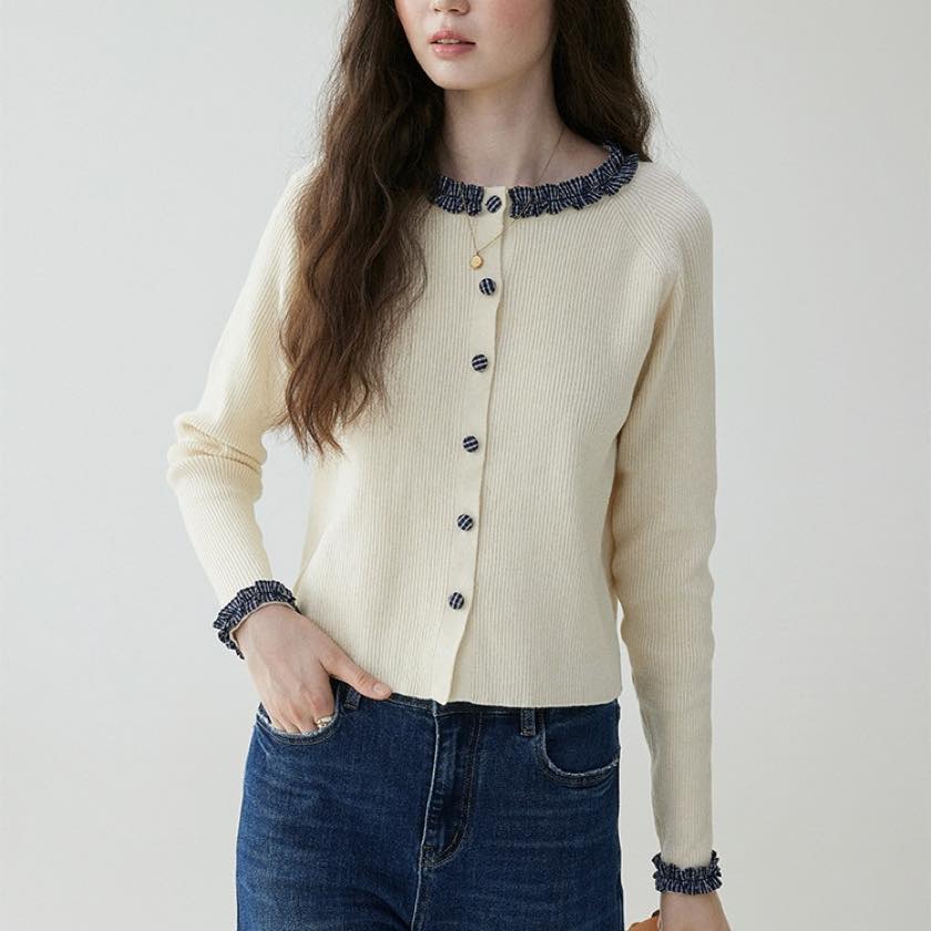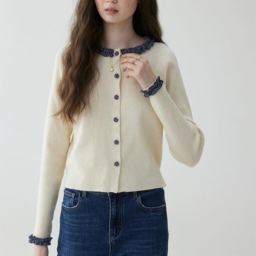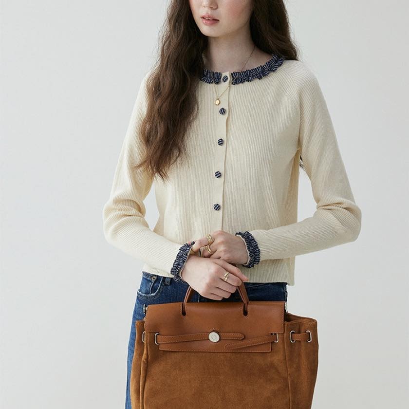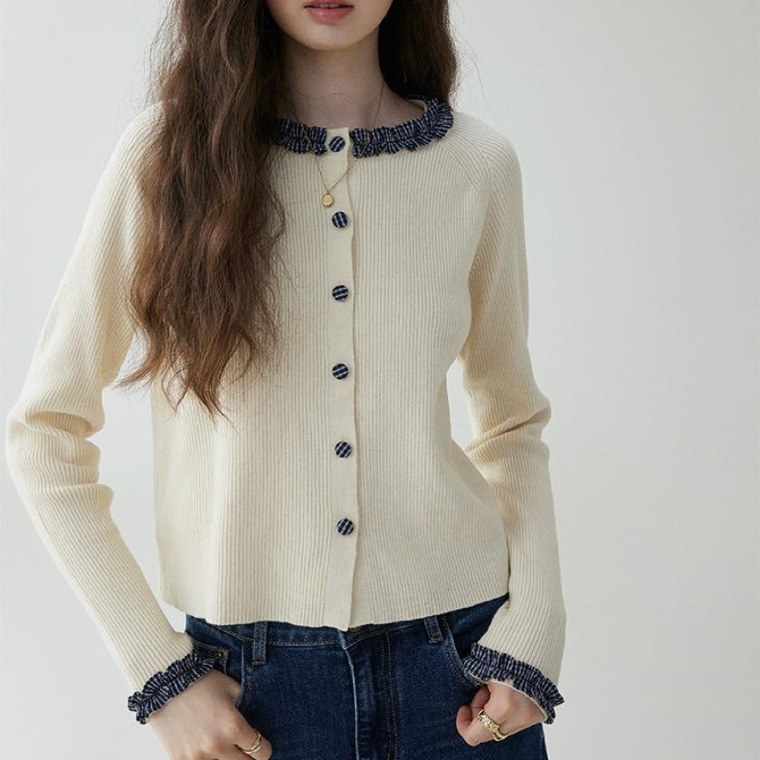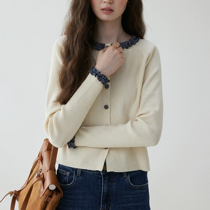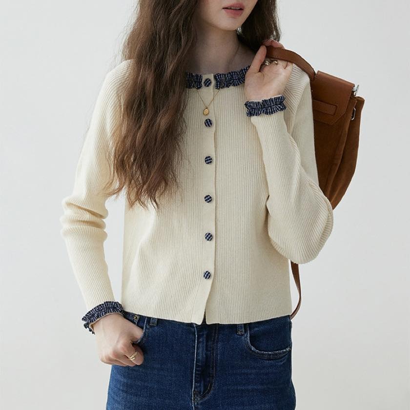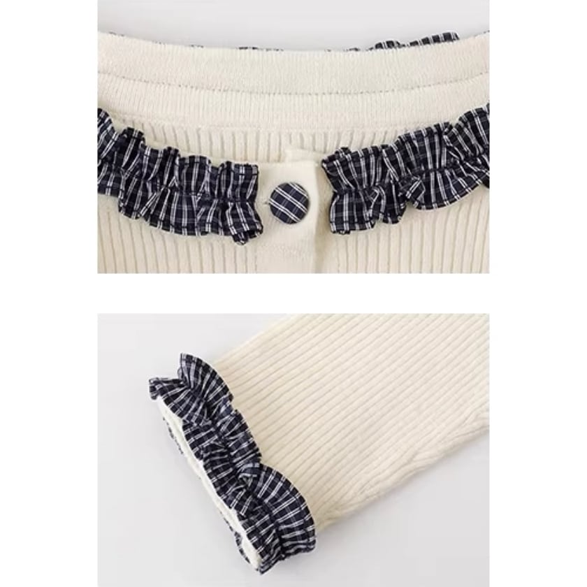 check frill design cardigan