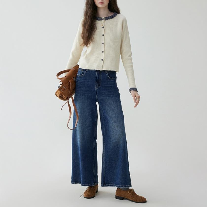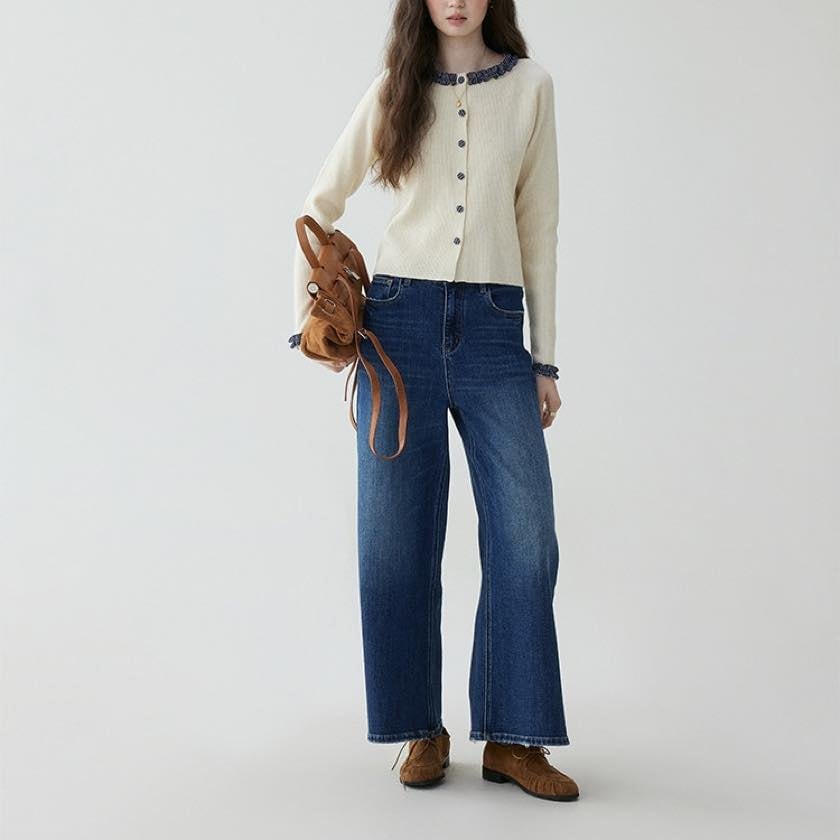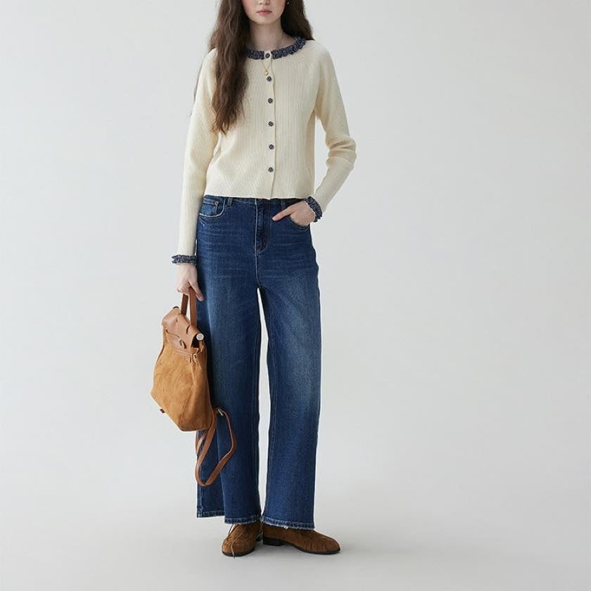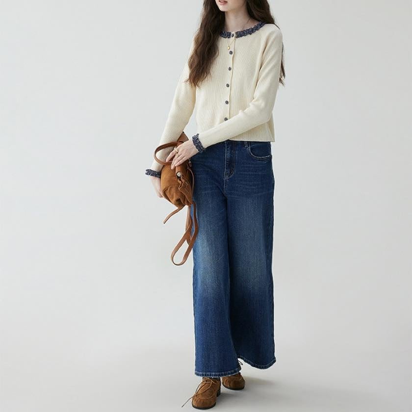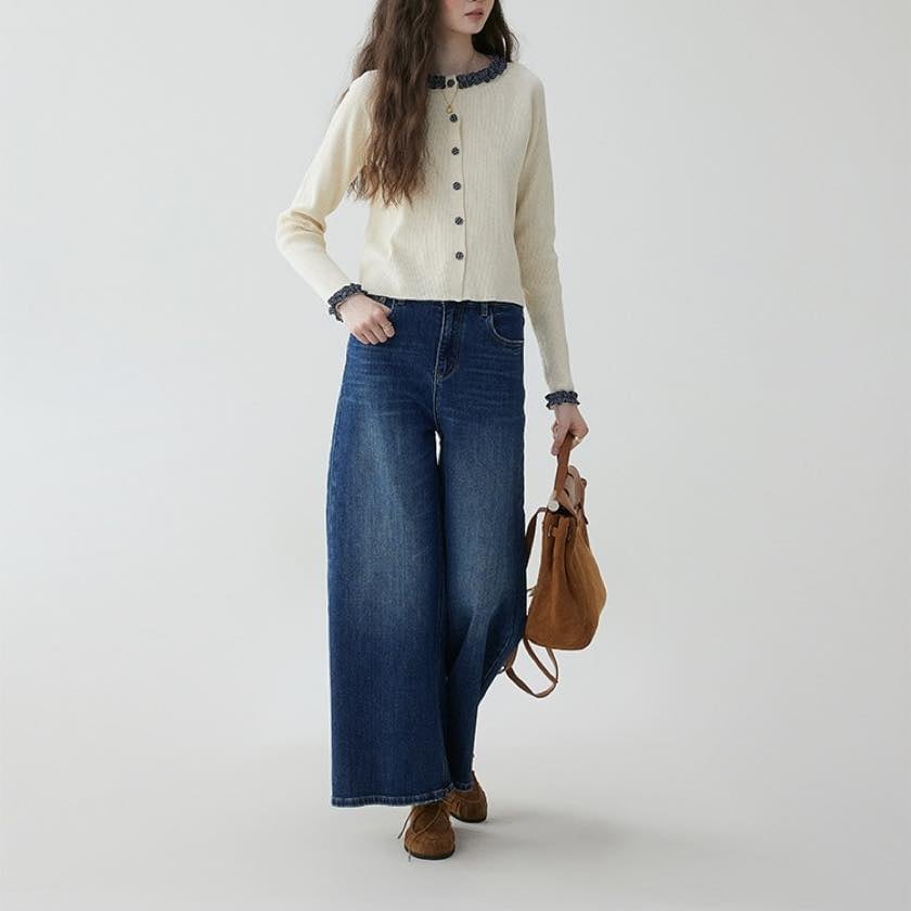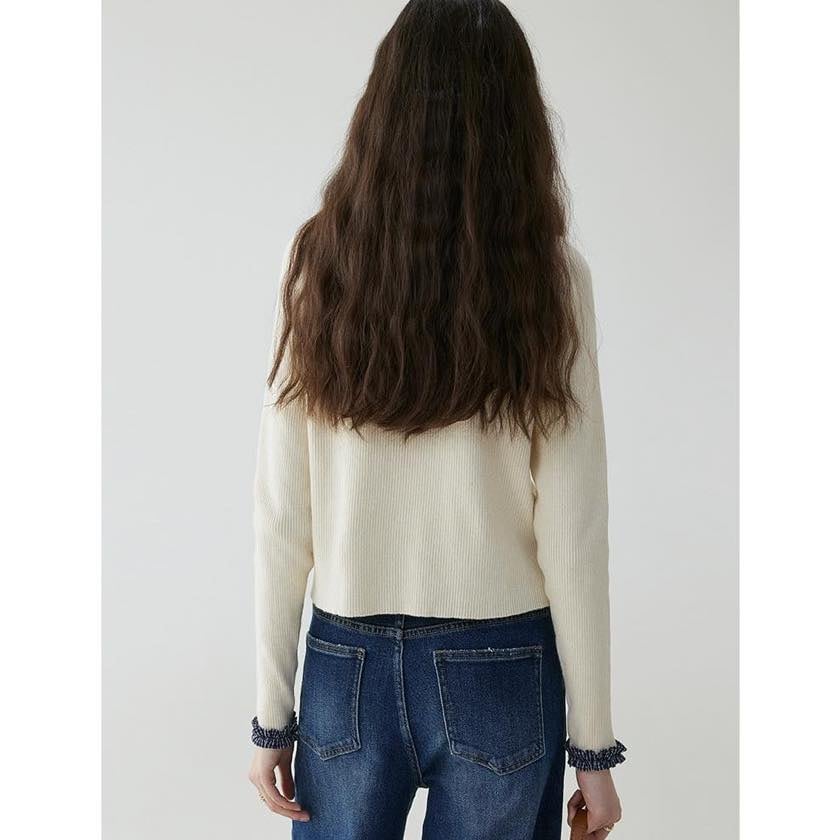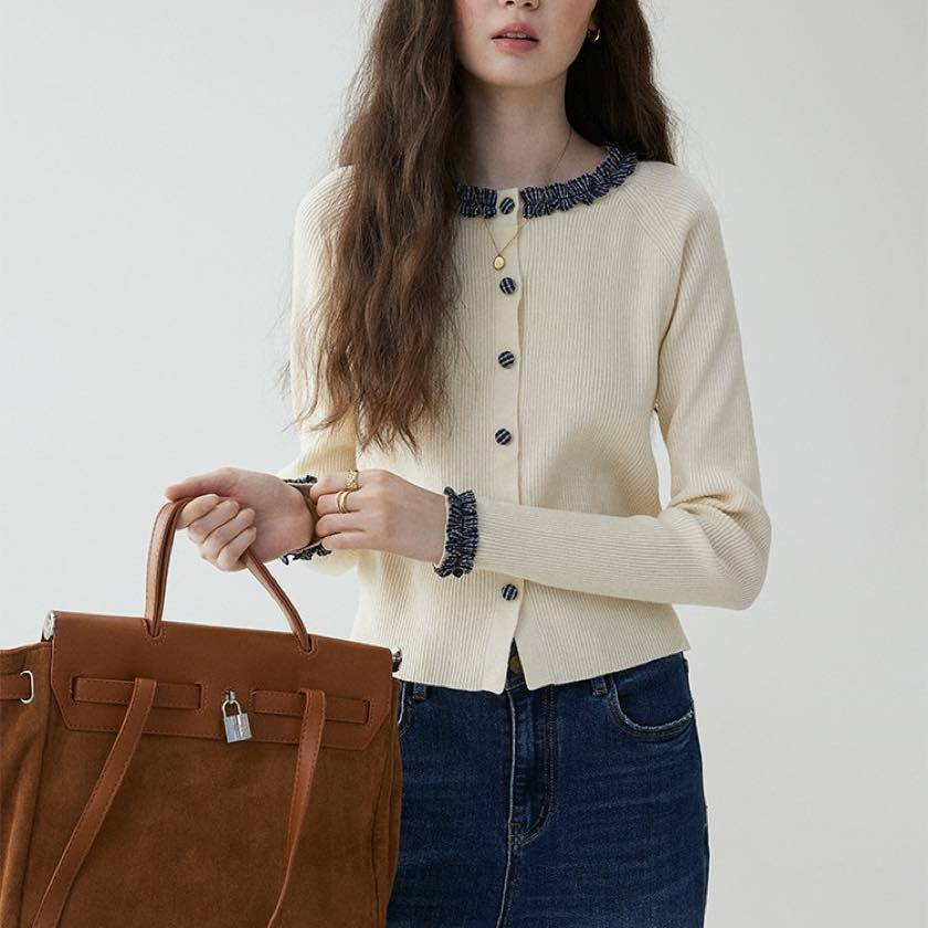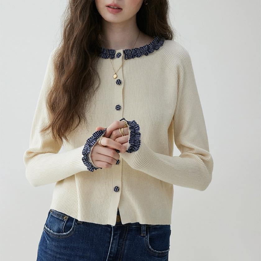 check frill design cardigan