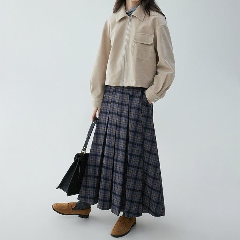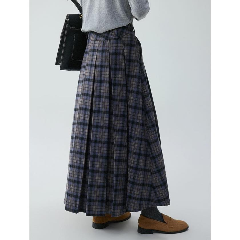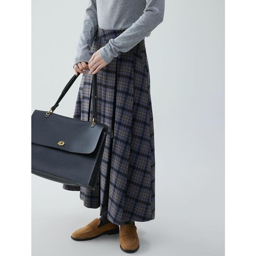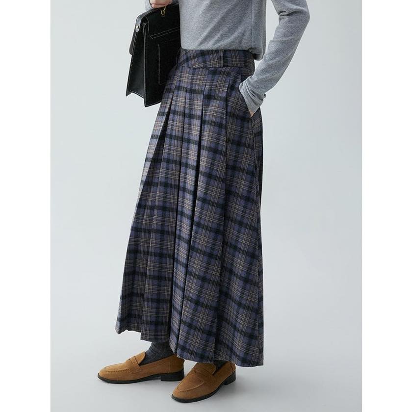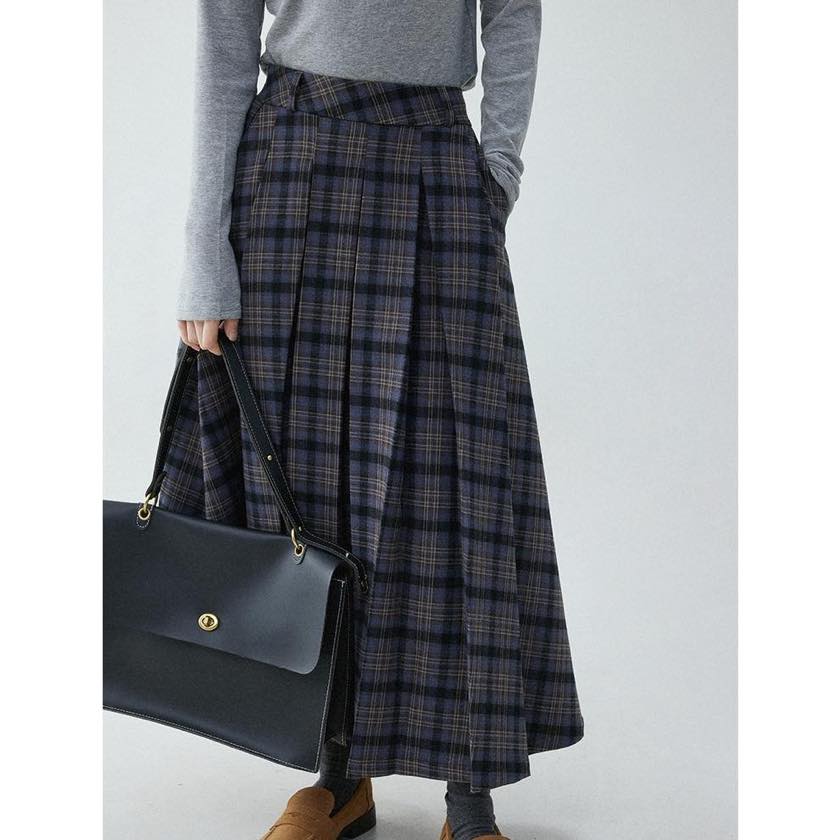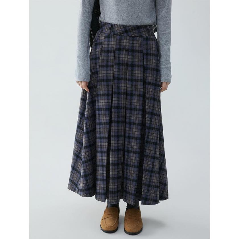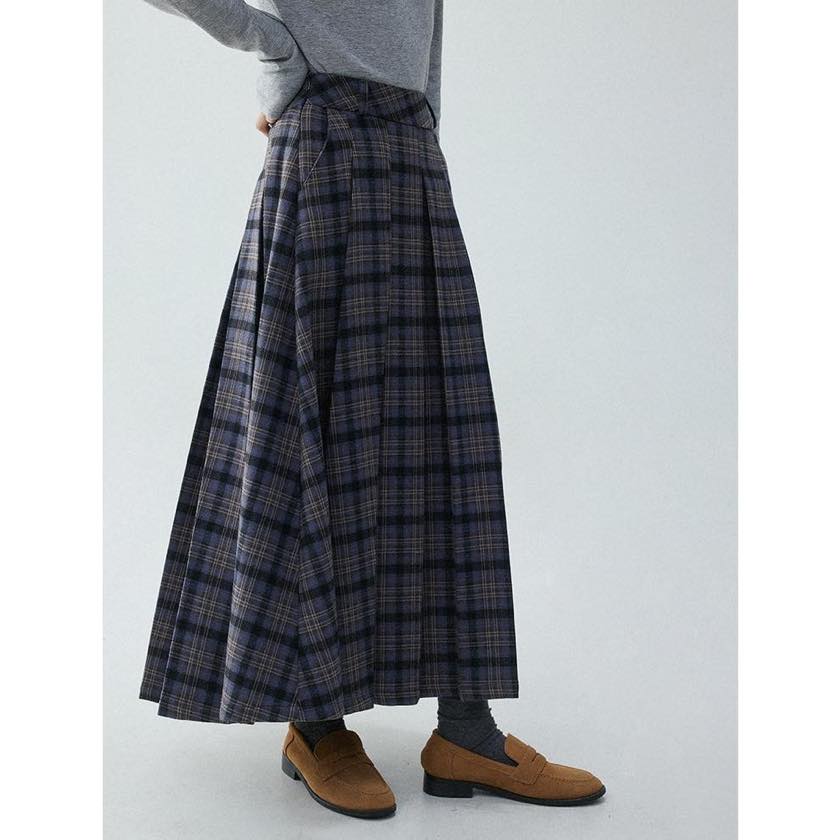 check pleated A-line skirt