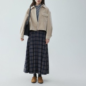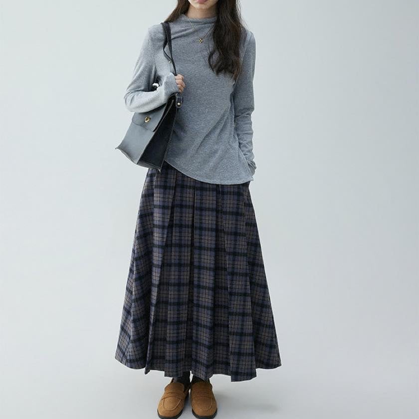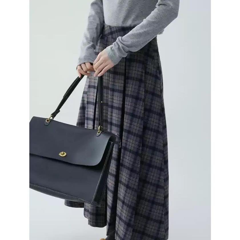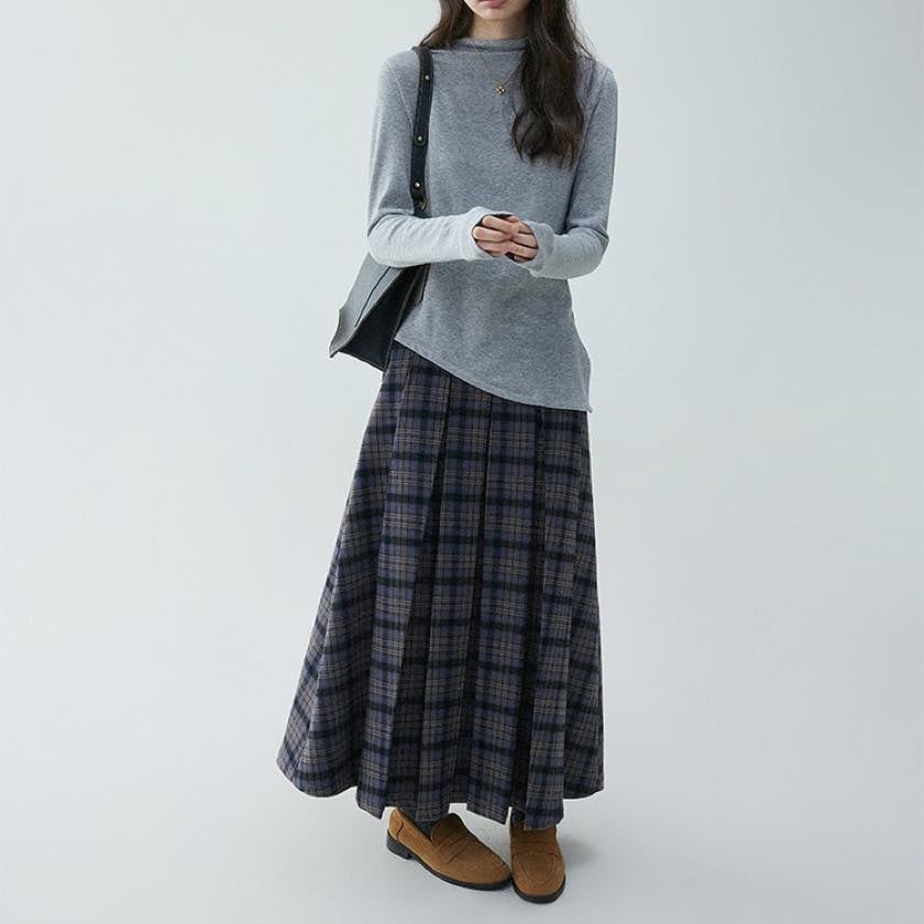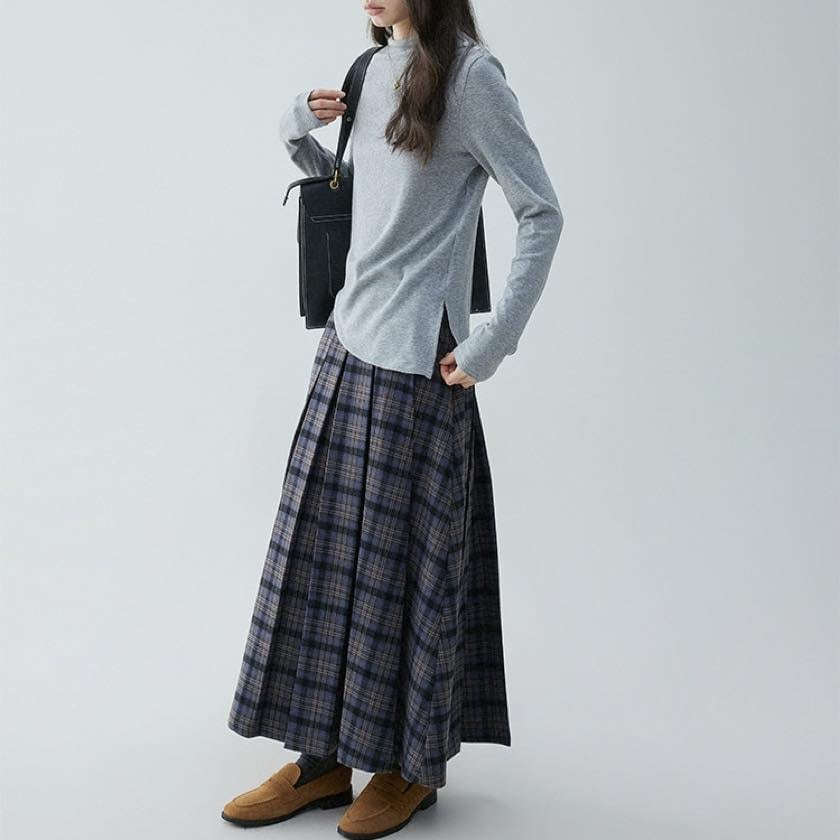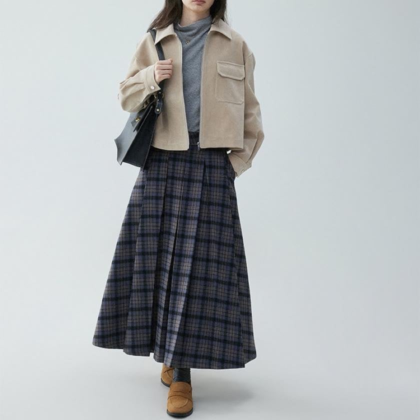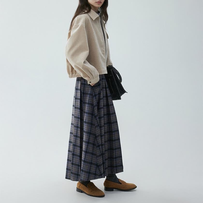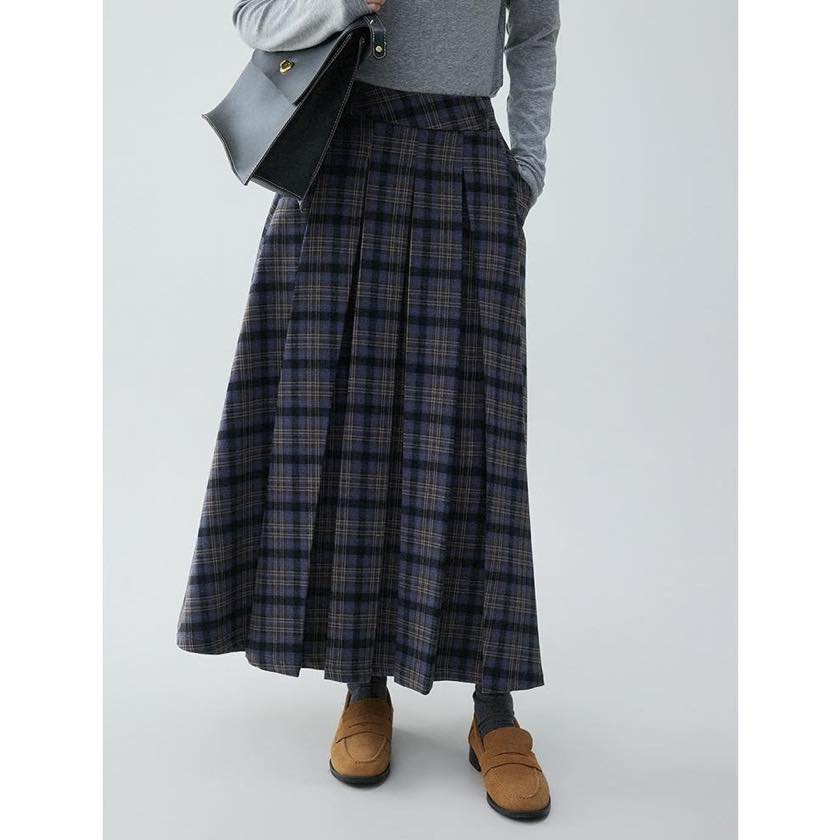 check pleated A-line skirt