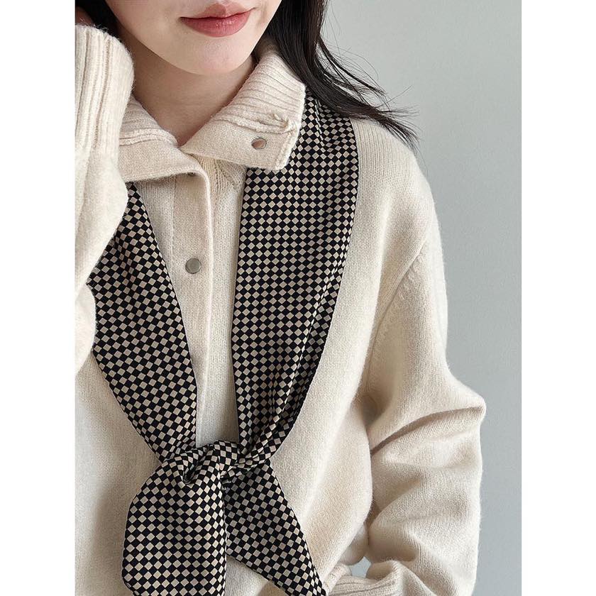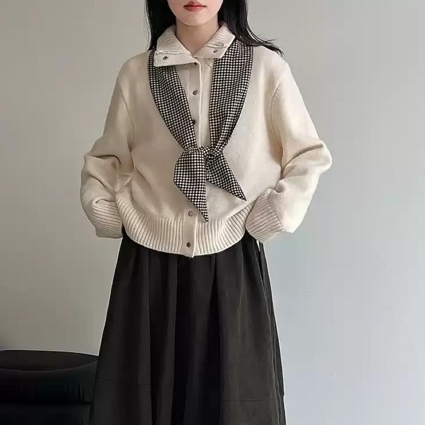 首元は程よく高さのあるリブ仕様で、前を留めればニットトップスのように、開ければ羽織としても着用できるデザインです。