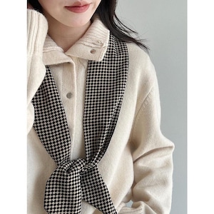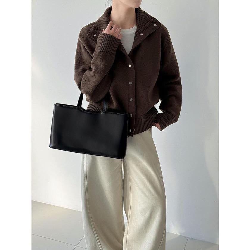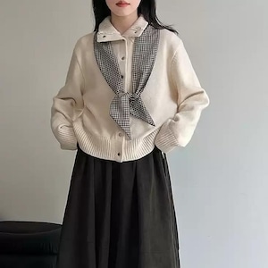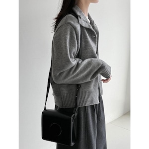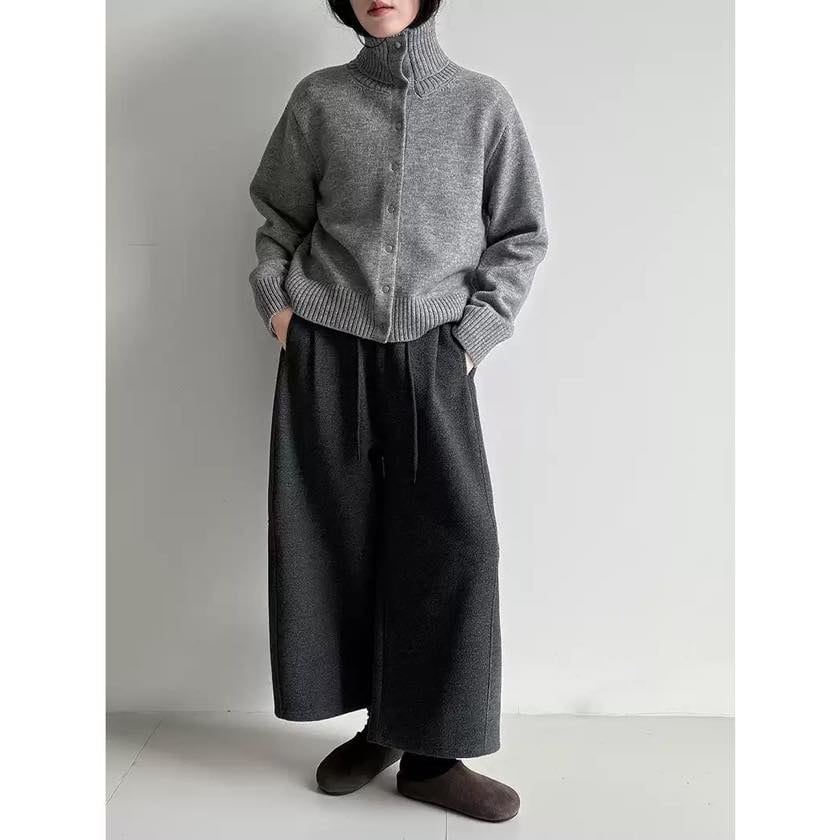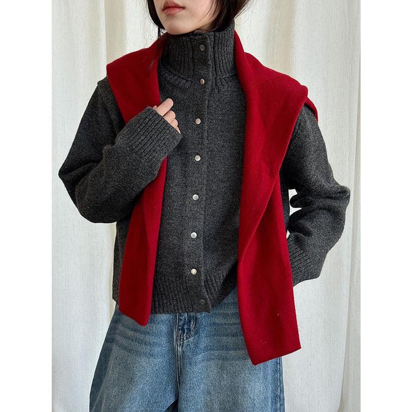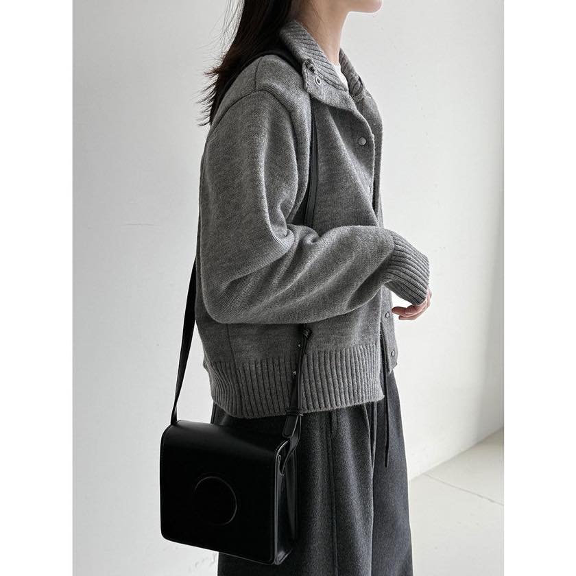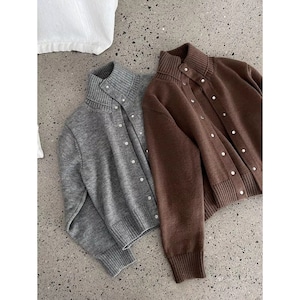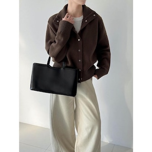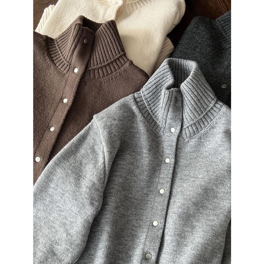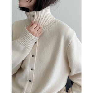立体感のある襟元が印象的な、スタンドカラーカーディガン。