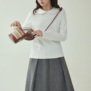 round collar long sleeve tops