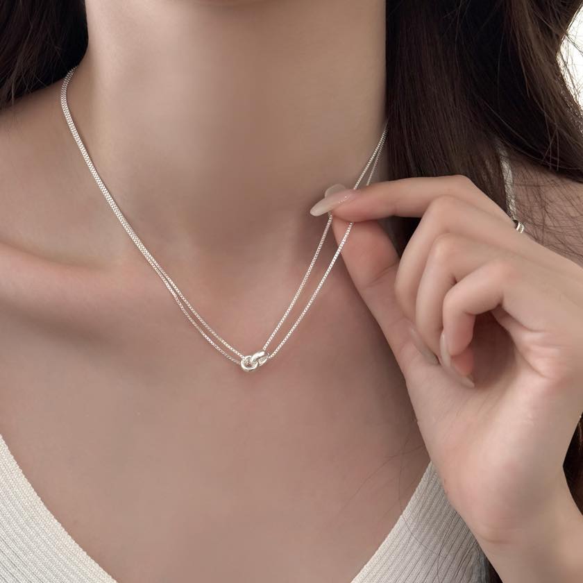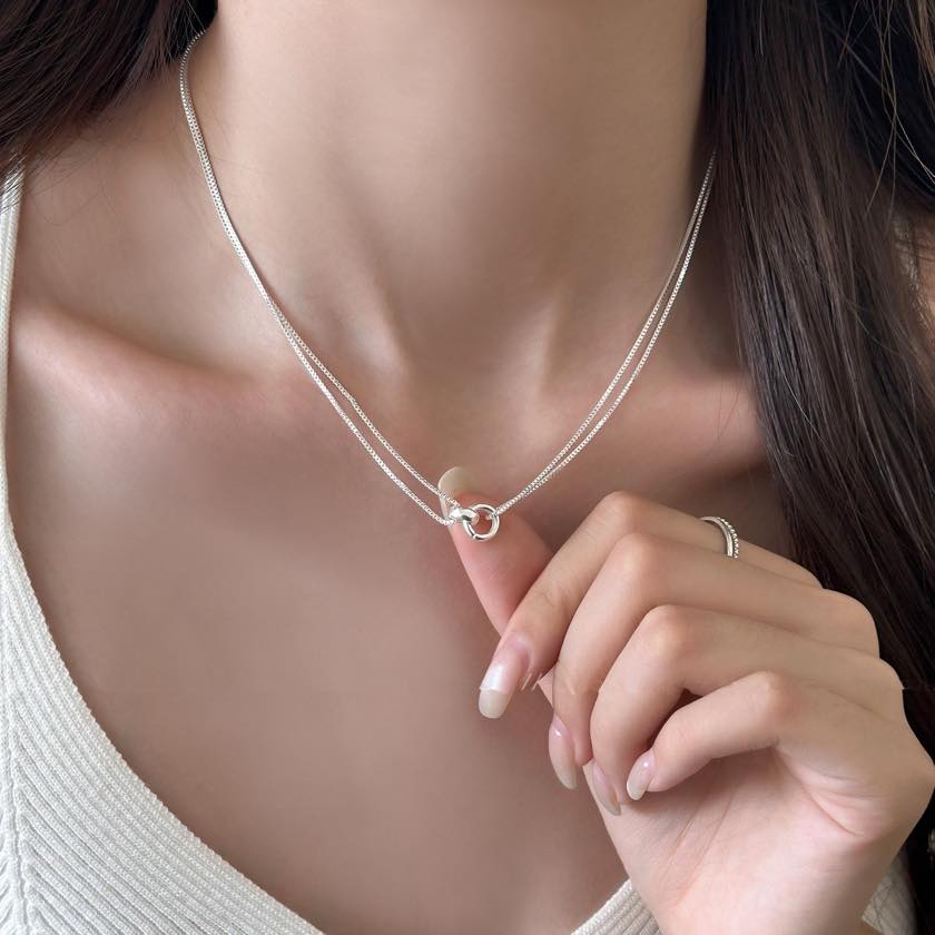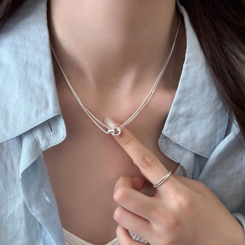 重なり合うチェーンが、自然な奥行きを生み出すデザインのネックレス。