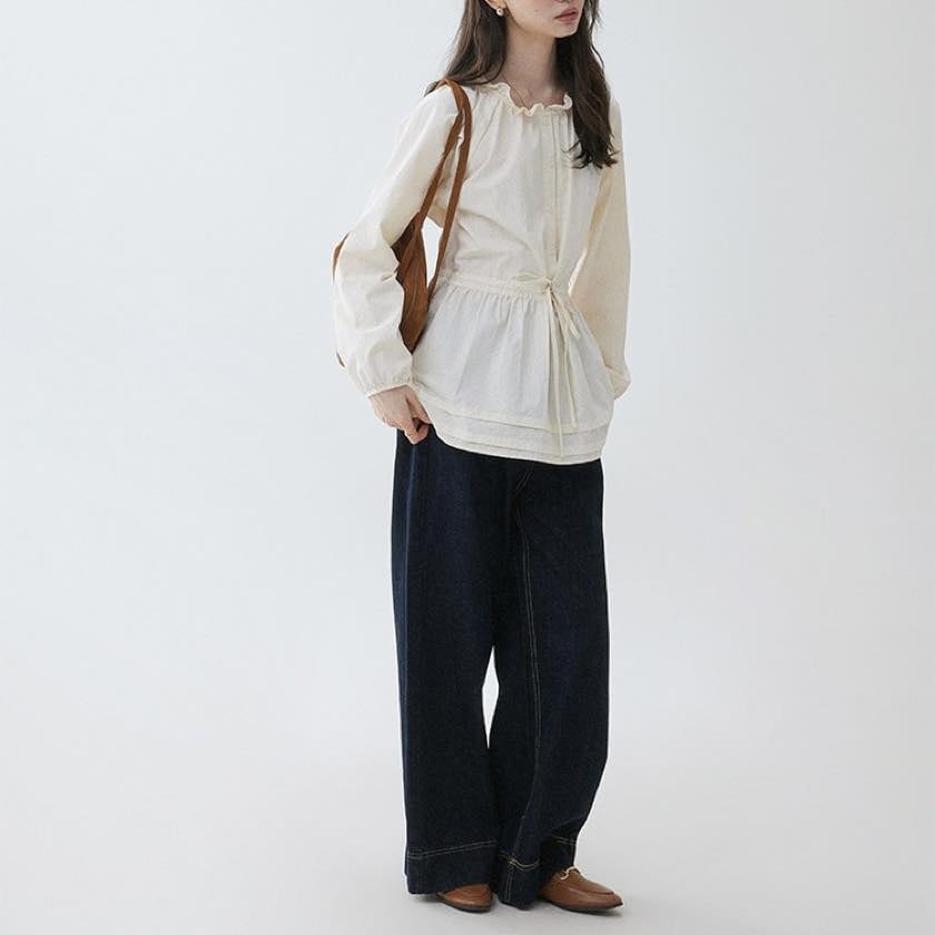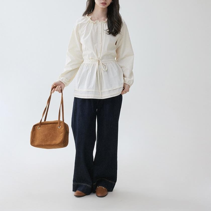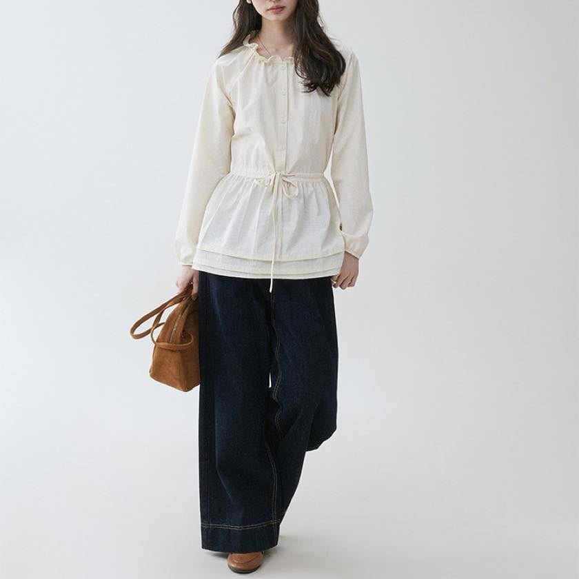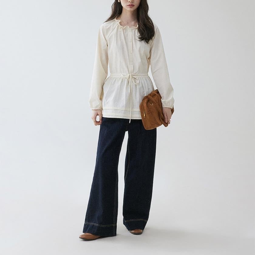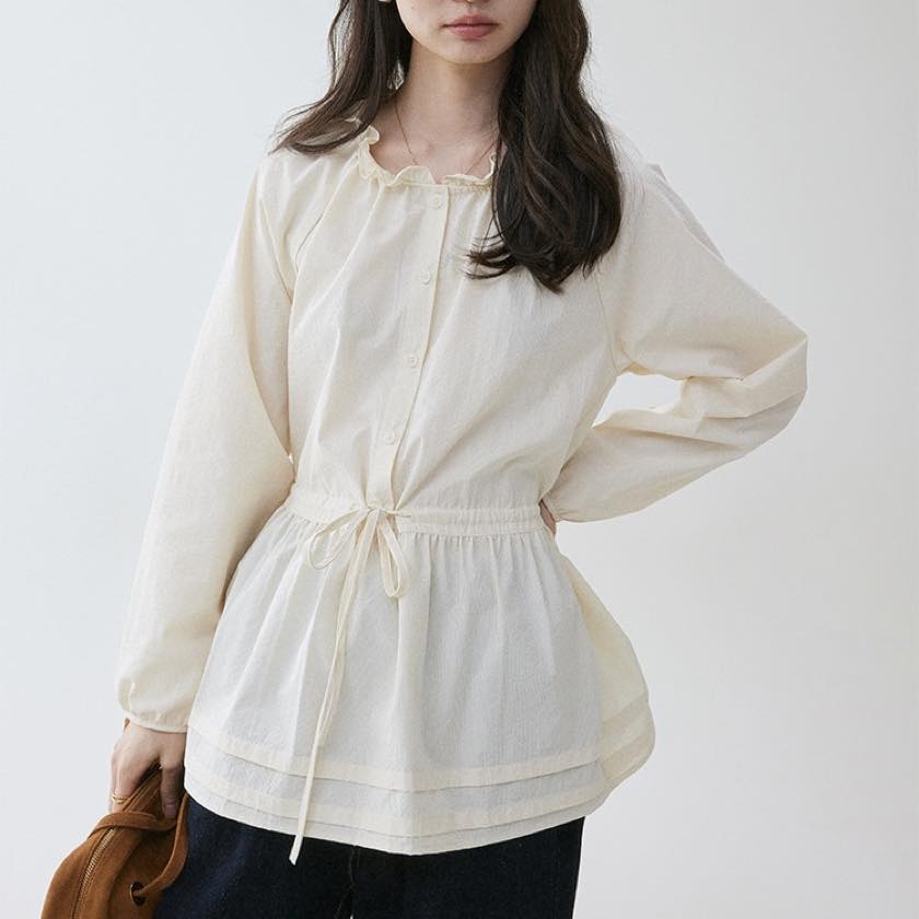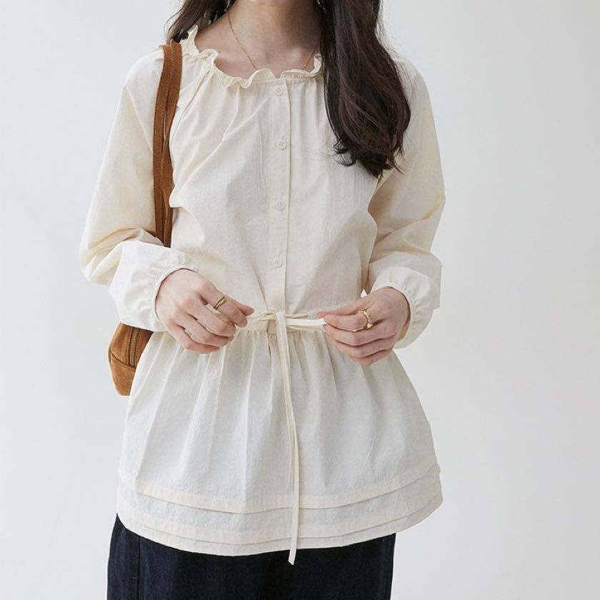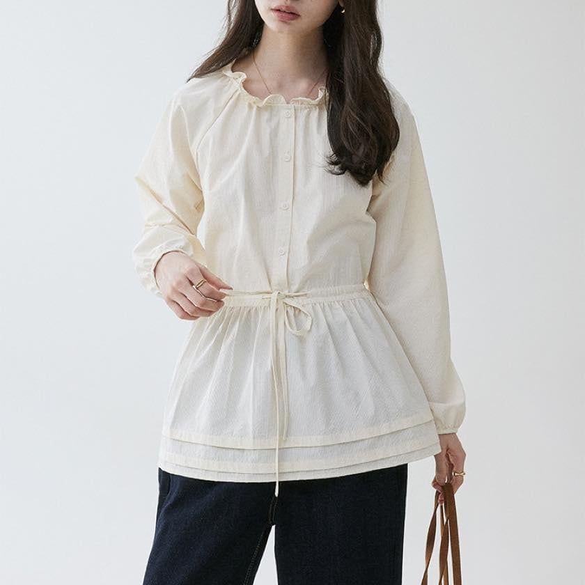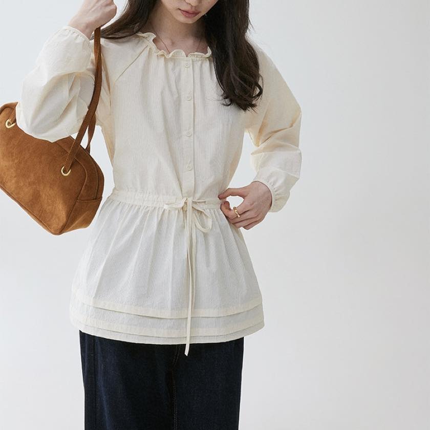 frilled waist drawstring midi shirt