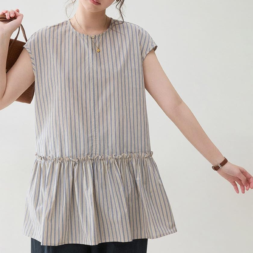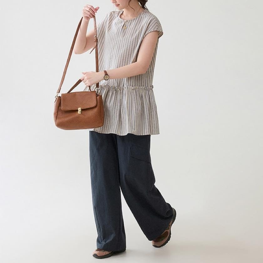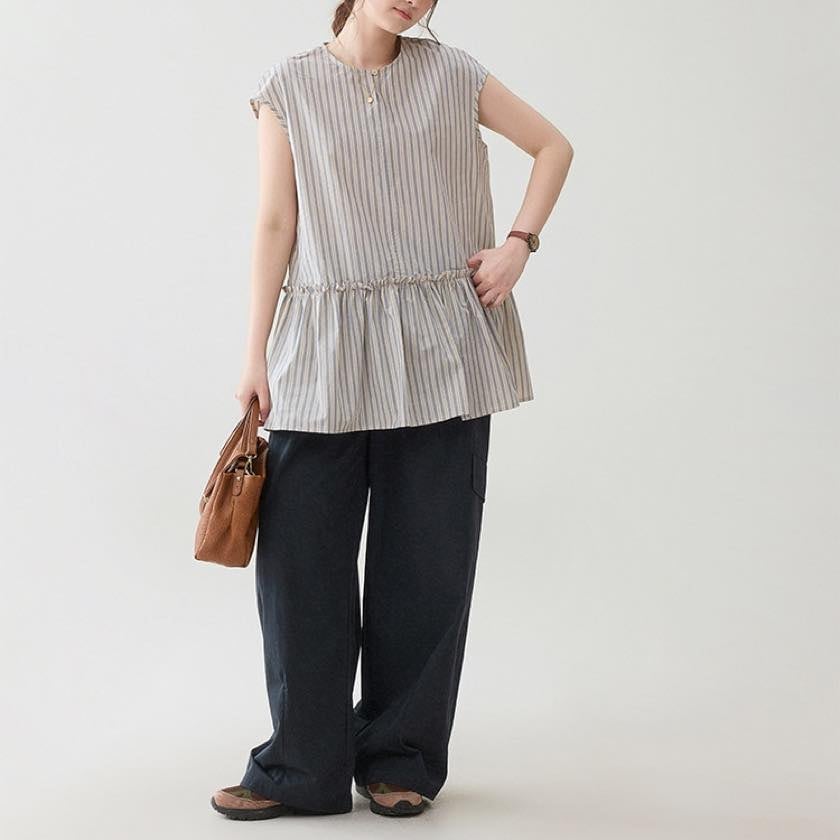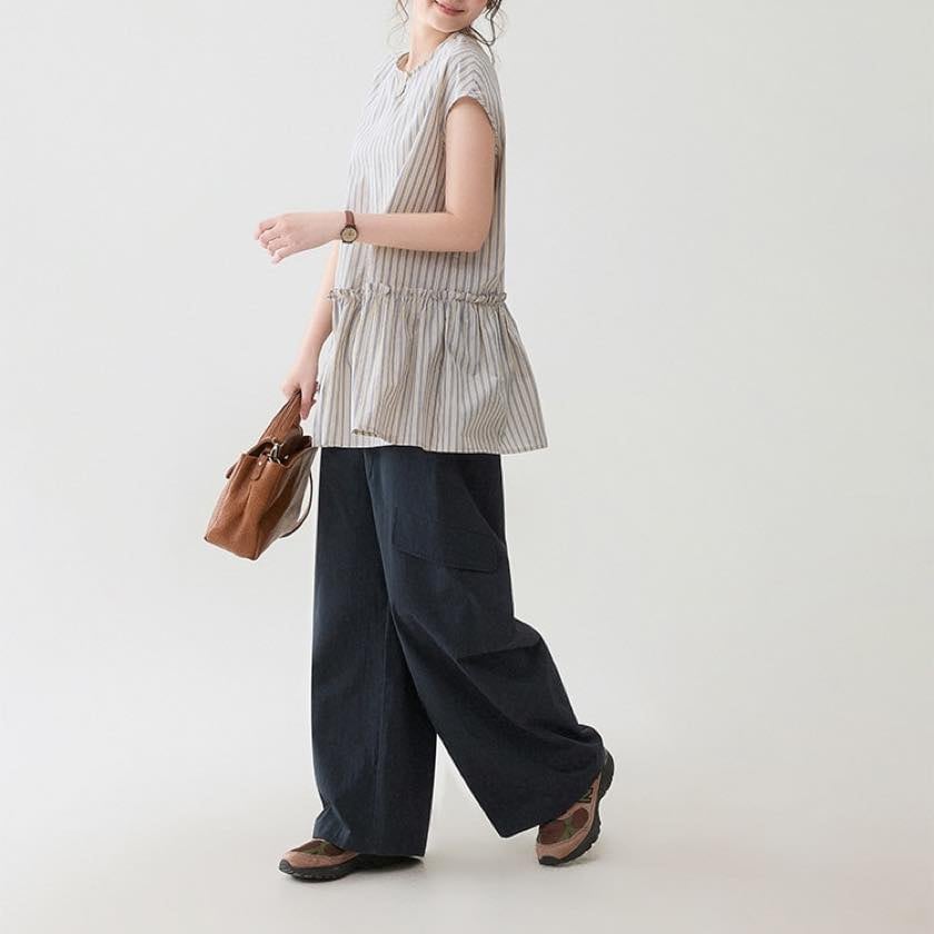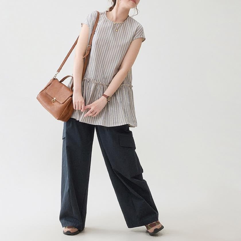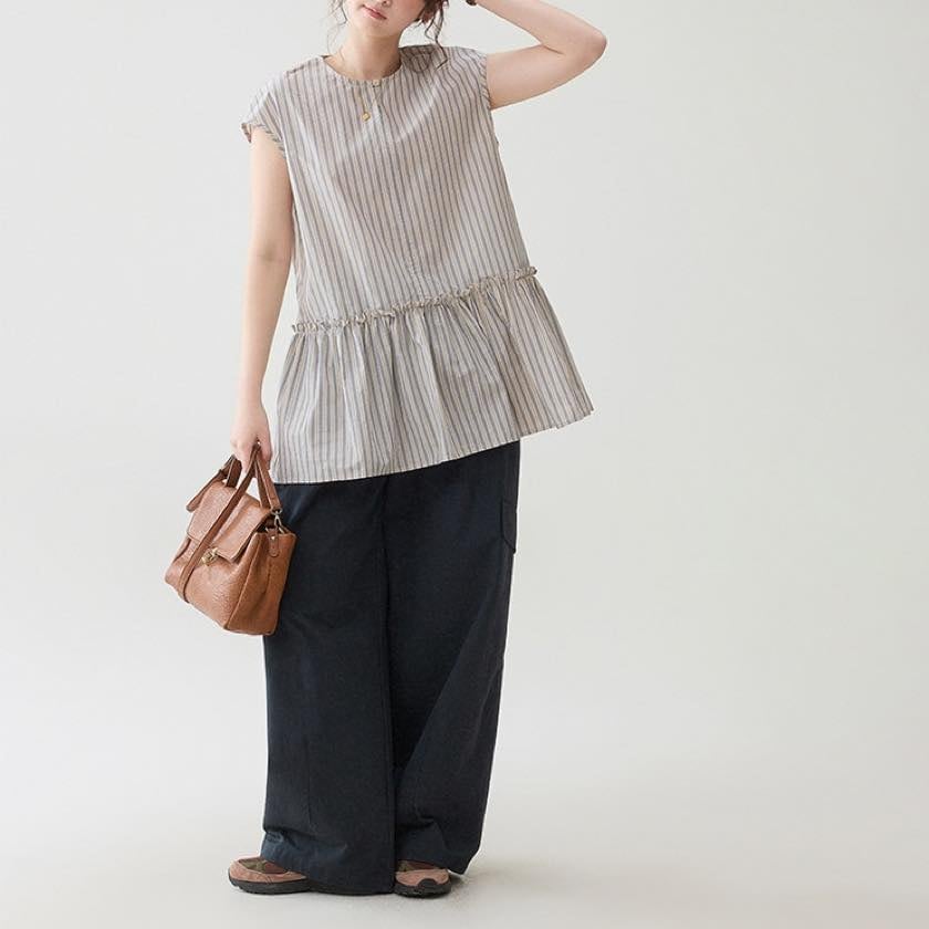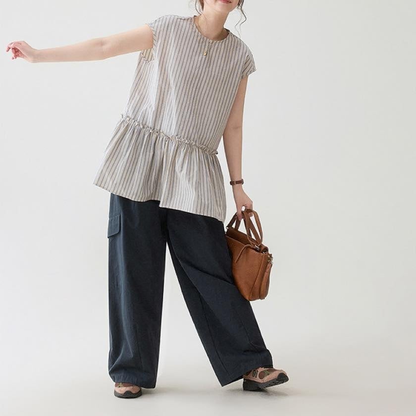 ほどよくゆとりのあるシルエットに、裾の切り替えで柔らかな動きをプラスした一枚です。