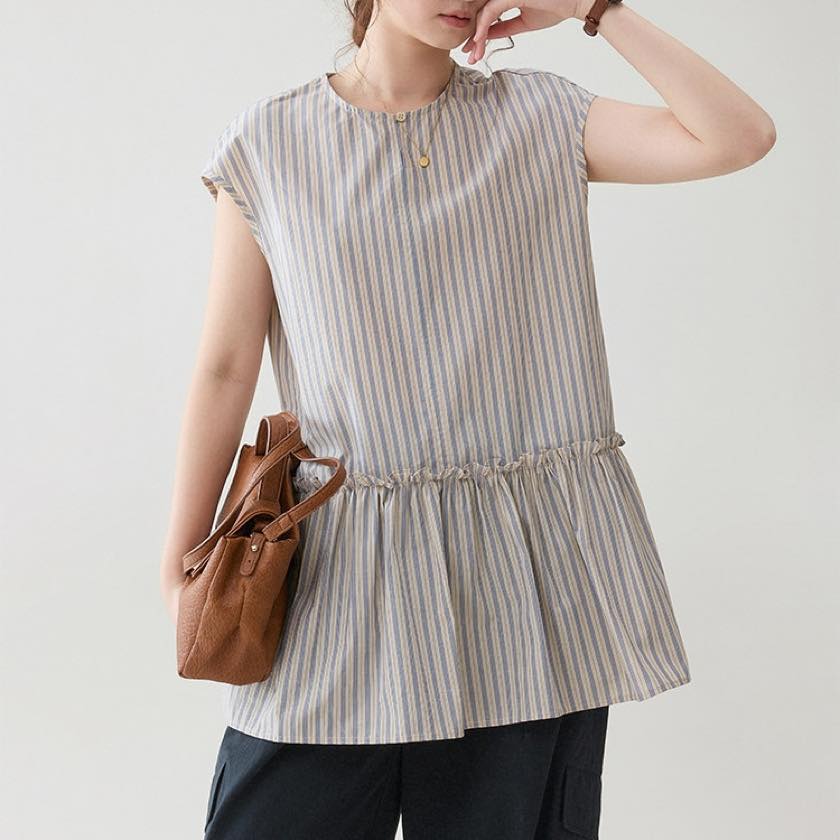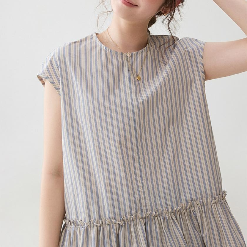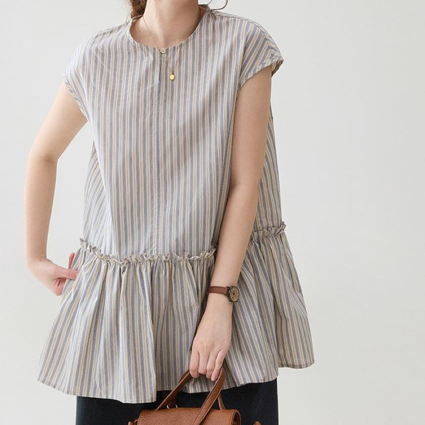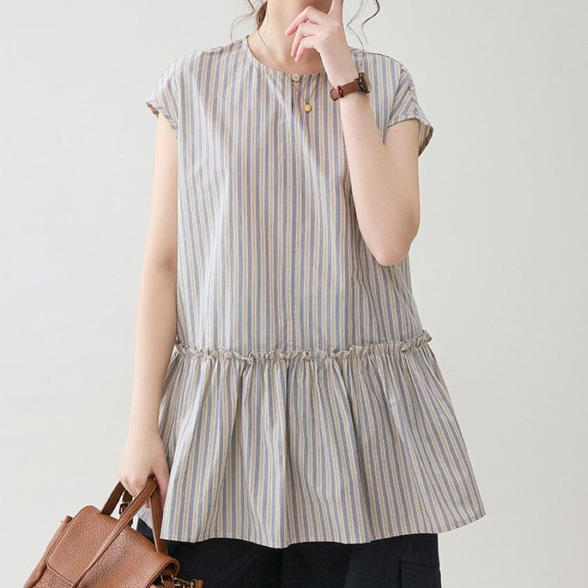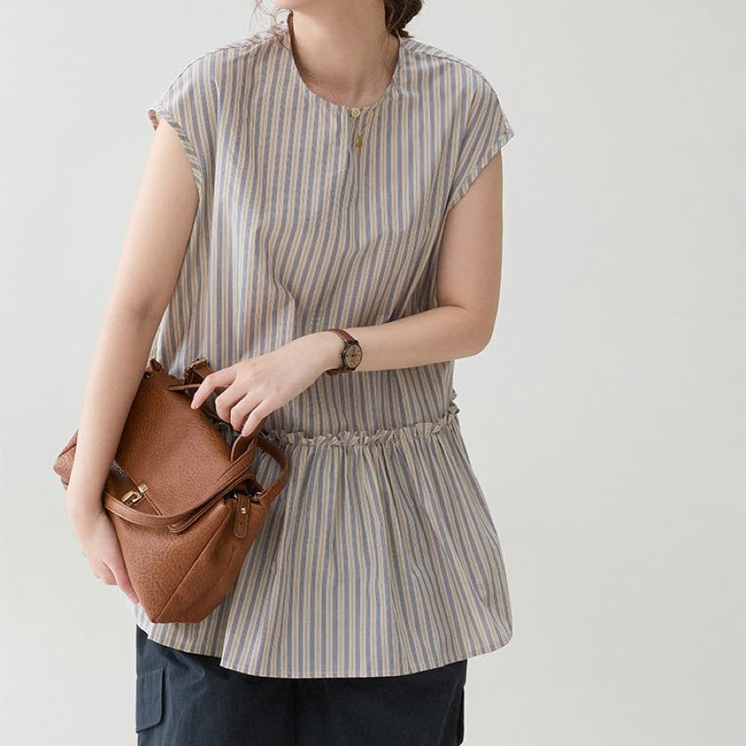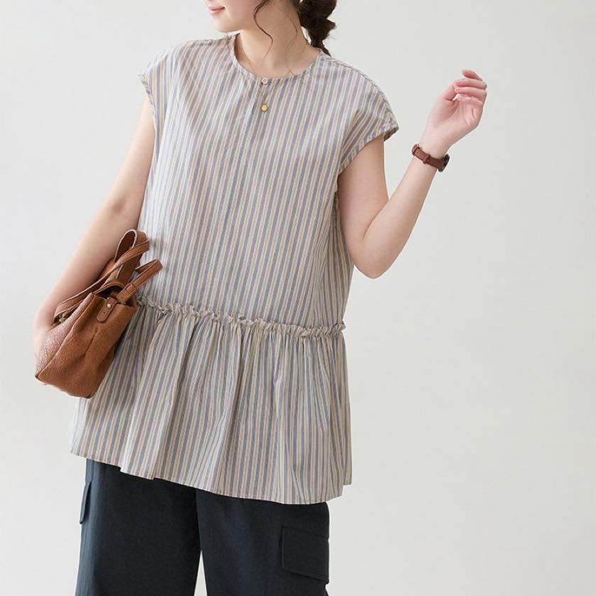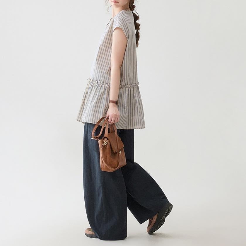 ほどよくゆとりのあるシルエットに、裾の切り替えで柔らかな動きをプラスした一枚です。