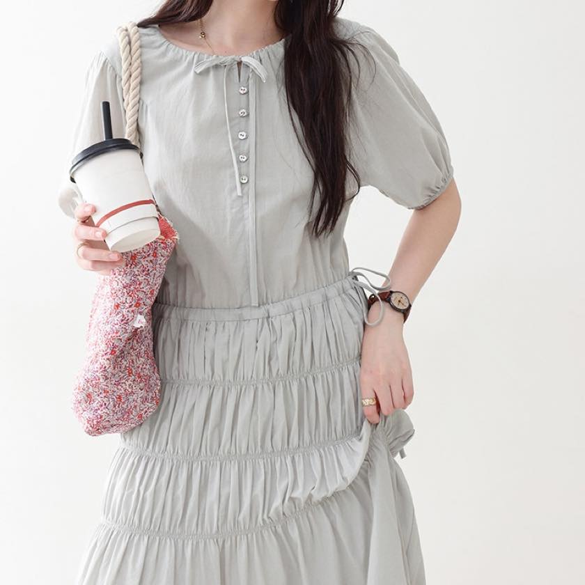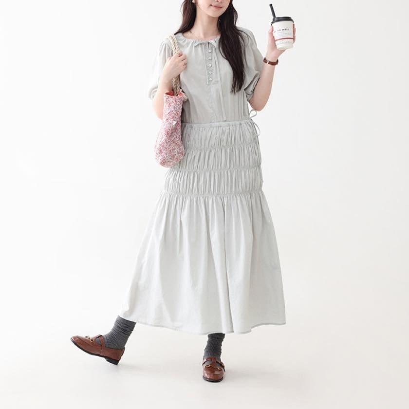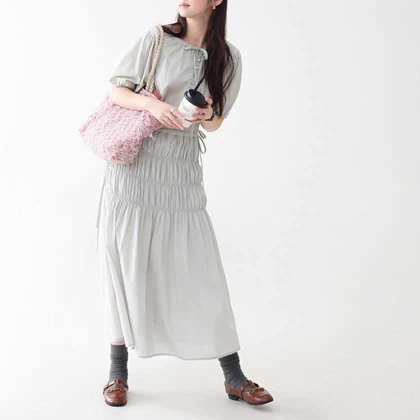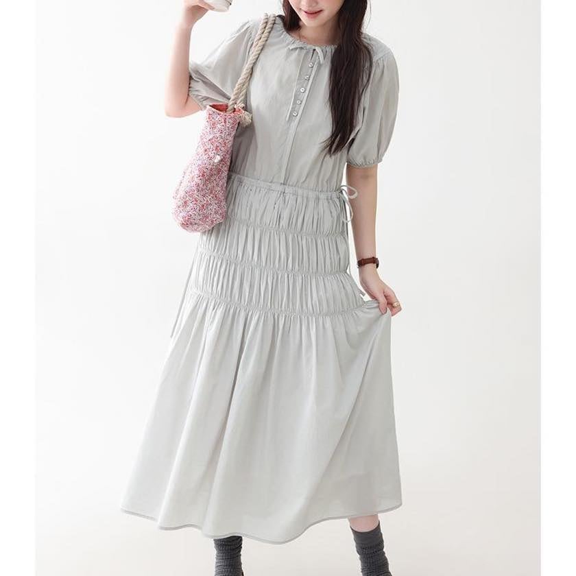 細やかなギャザーが生み出す、やわらかな表情が魅力のワンピース。