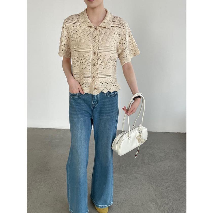 crochet knit polo cardigan