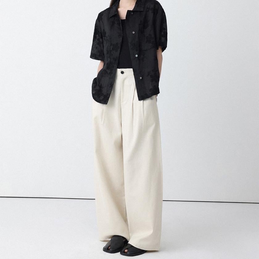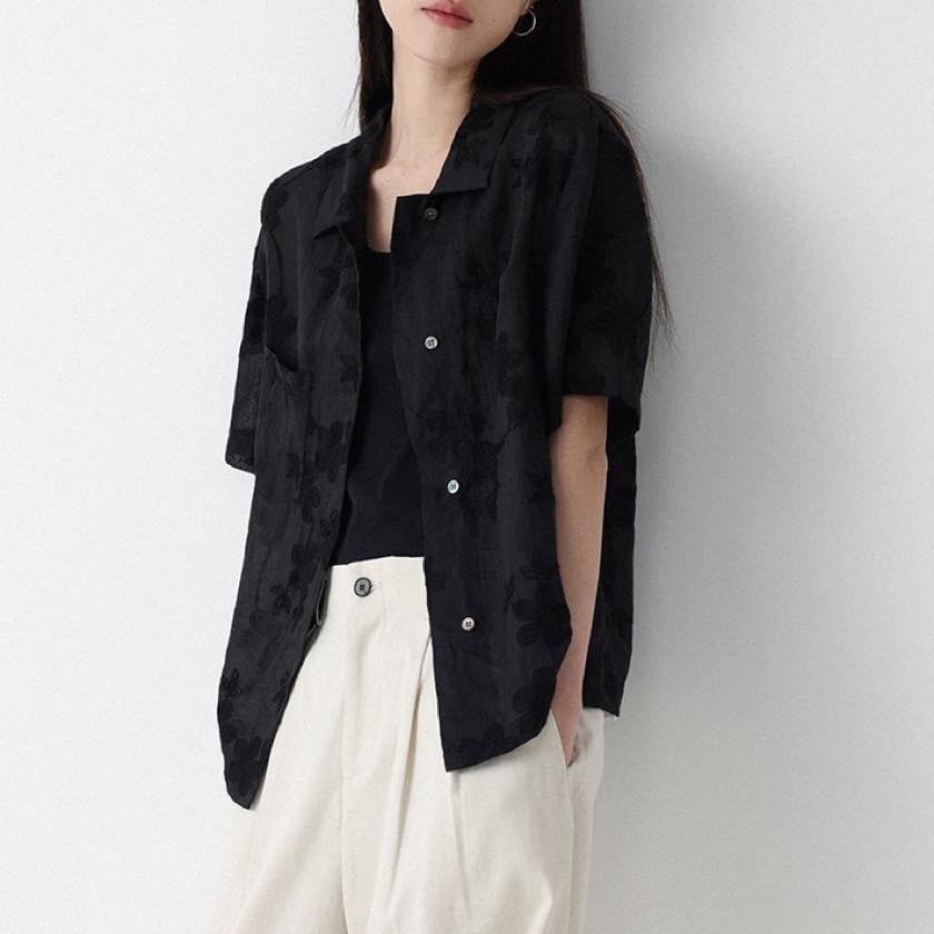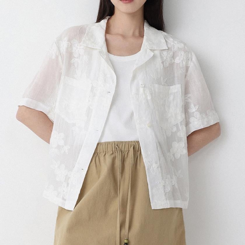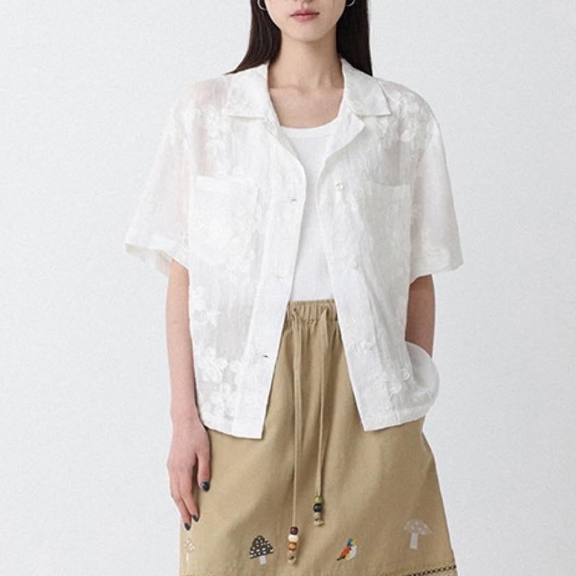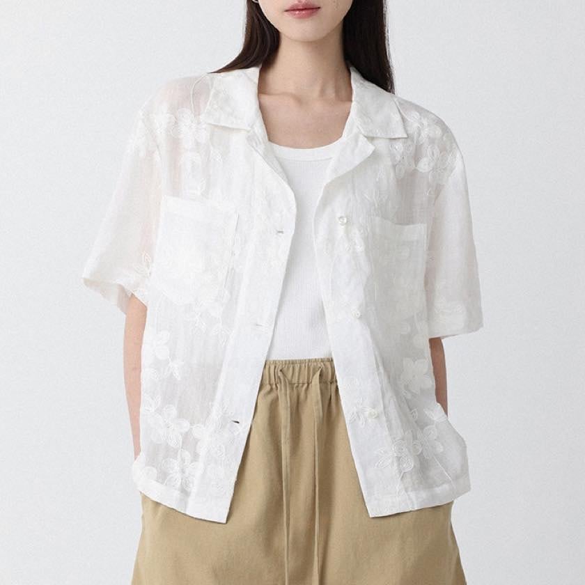 繊細に施されたフローラル刺繍が、さりげない華やかさを演出するシャツ。