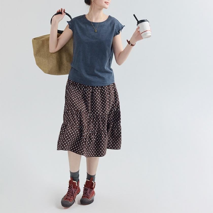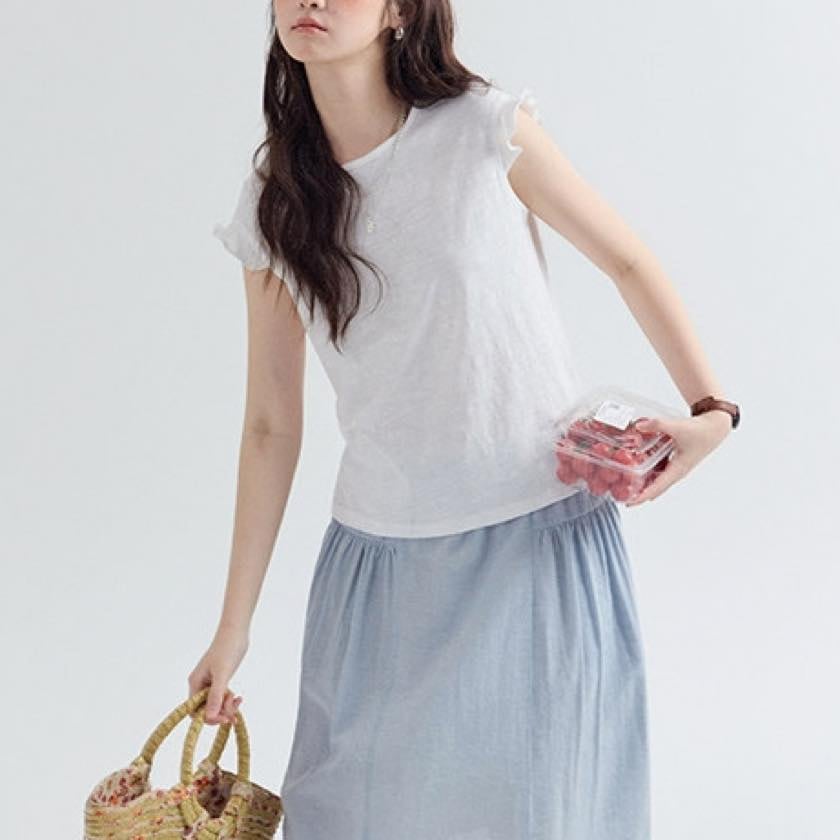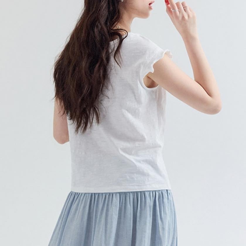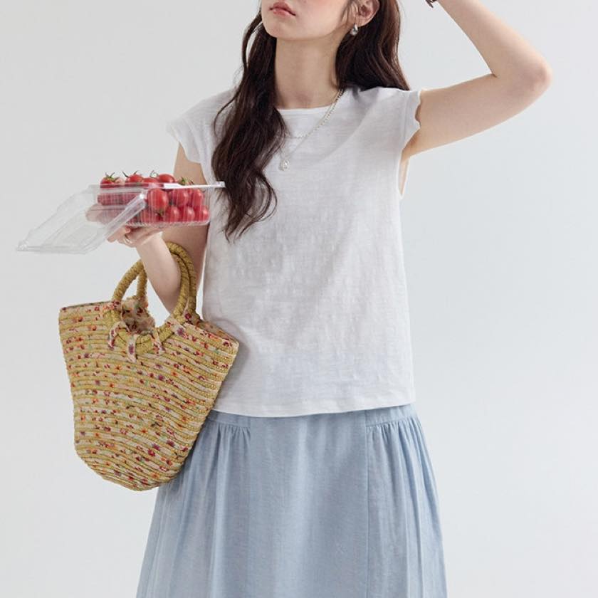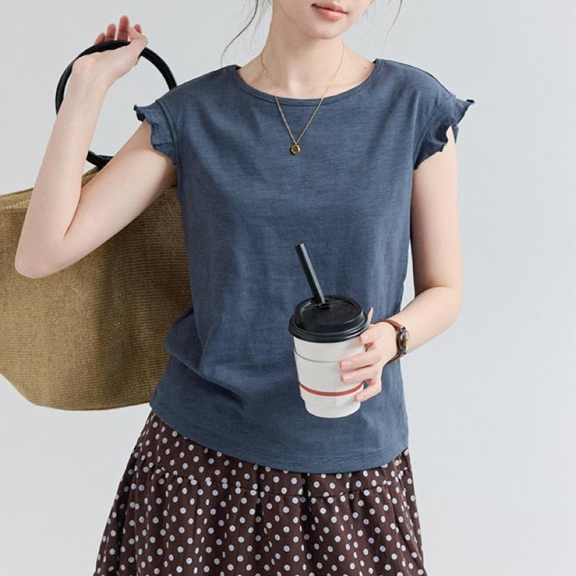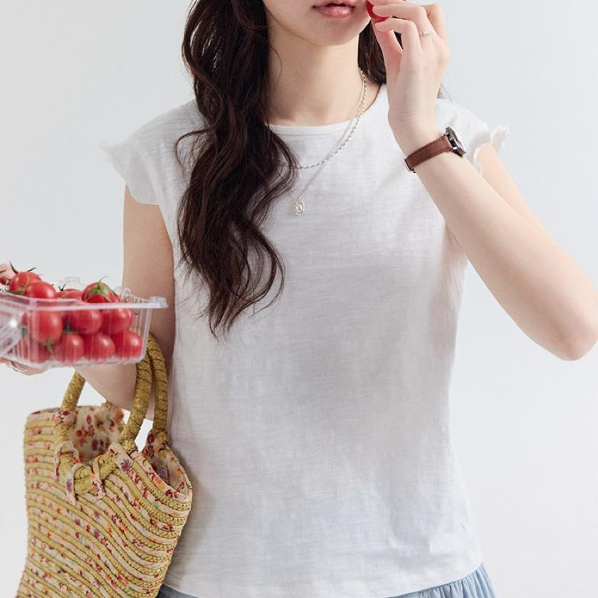 上品なフレンチスリーブと控えめなメロウの表情で、シンプルに差がつくカットソー。
