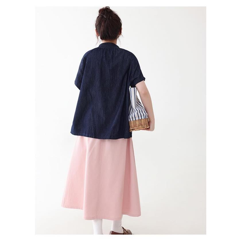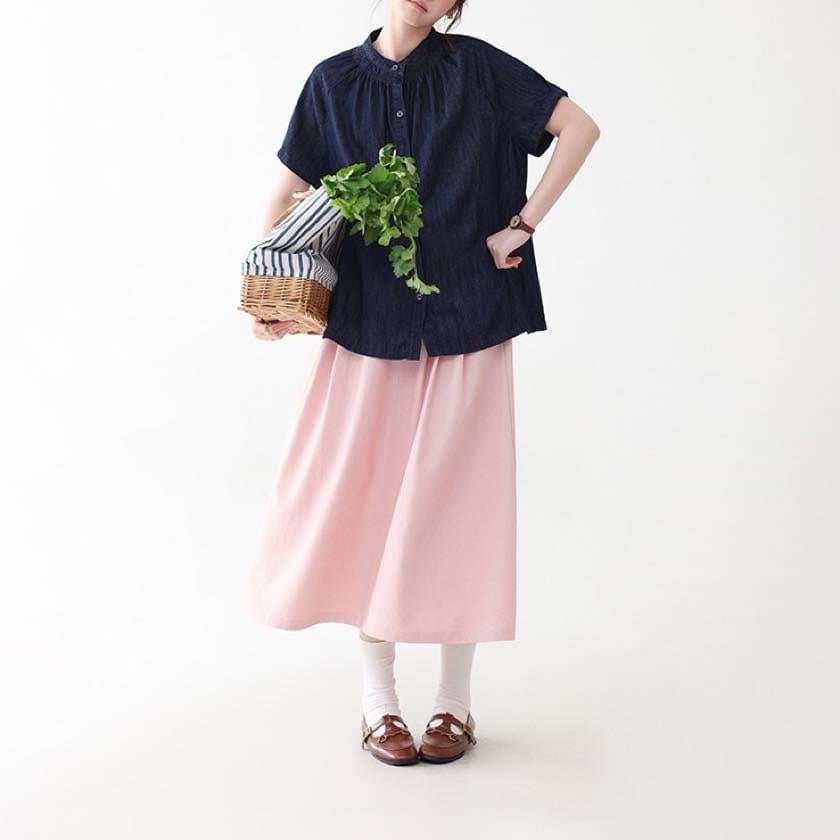 バンドカラーですっきりとした印象になり、一枚で軽やかな抜け感を演出します。