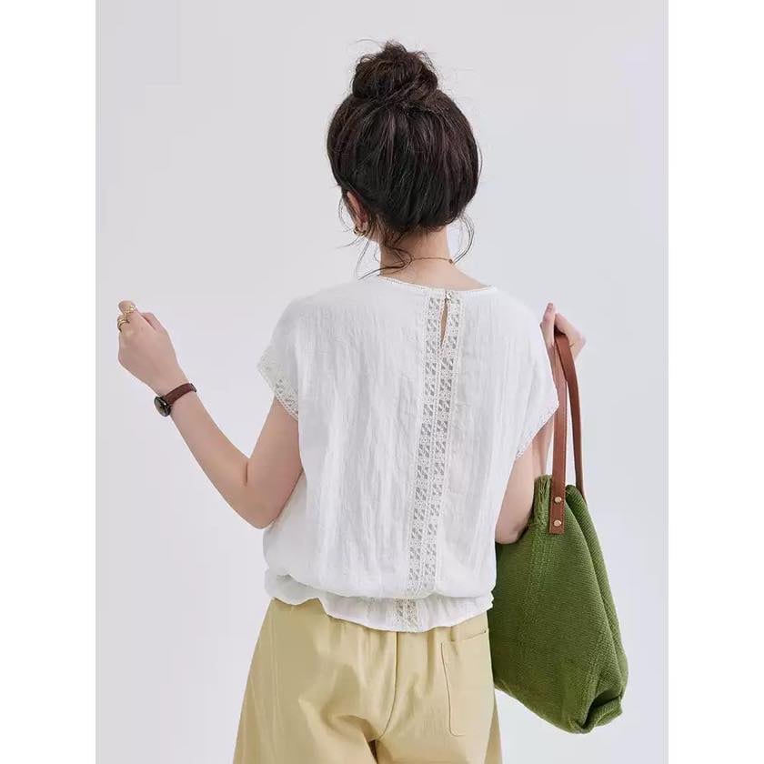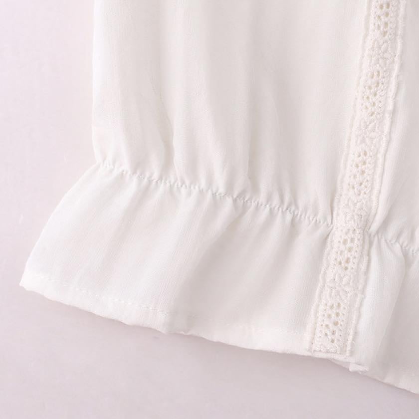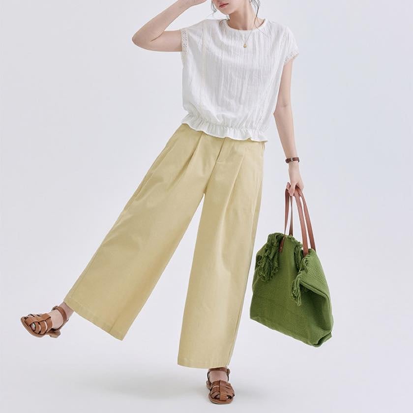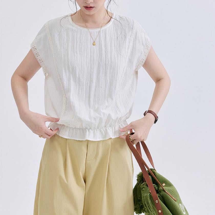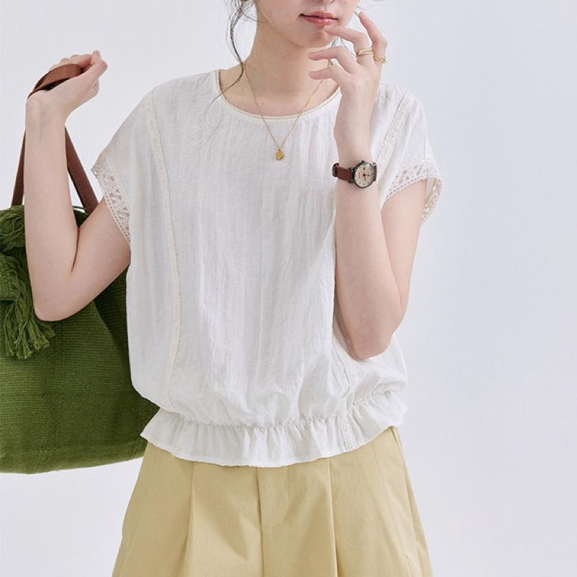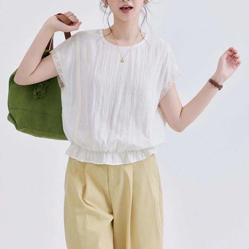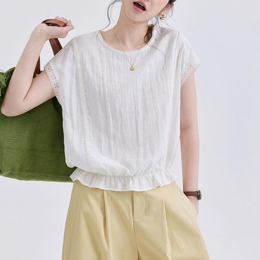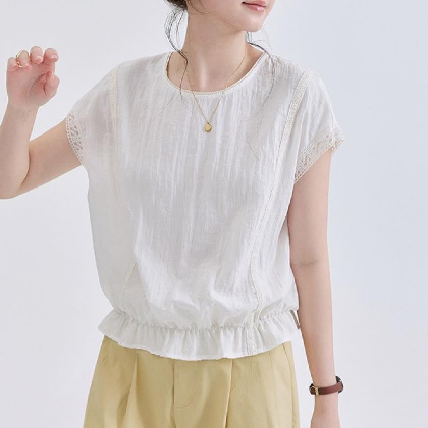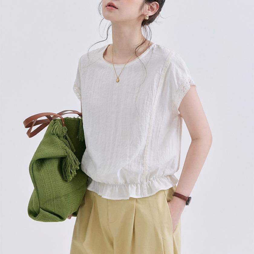 裾にあしらったフリルが、やさしく揺れる軽やかなトップス。