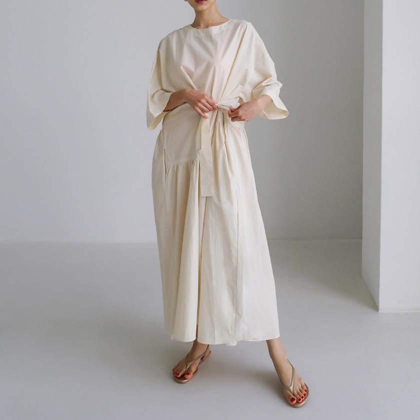 ウエストのリボンは、前で結んでも、後ろで結んでも、垂らしても◎で、その日の気分で色々なスタイルを楽しめます。